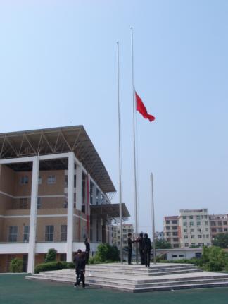 下午2点28分,这是一个特殊的时刻,全院师生的心和四川人民的心紧紧连在一起。随着汽车、防空警报等的鸣响,学院领导及各处(室)、系(部)和院属各单位工作人员停止一切工作,为四川罹难同胞肃立默哀;在教学楼上课的师生停止教学活动并庄严肃立为四川罹难同胞默哀;同时学院部分师生代表在田径场集合举行降半旗默哀仪式,向在地震中遇难的同胞表达了沉痛的哀悼之情。