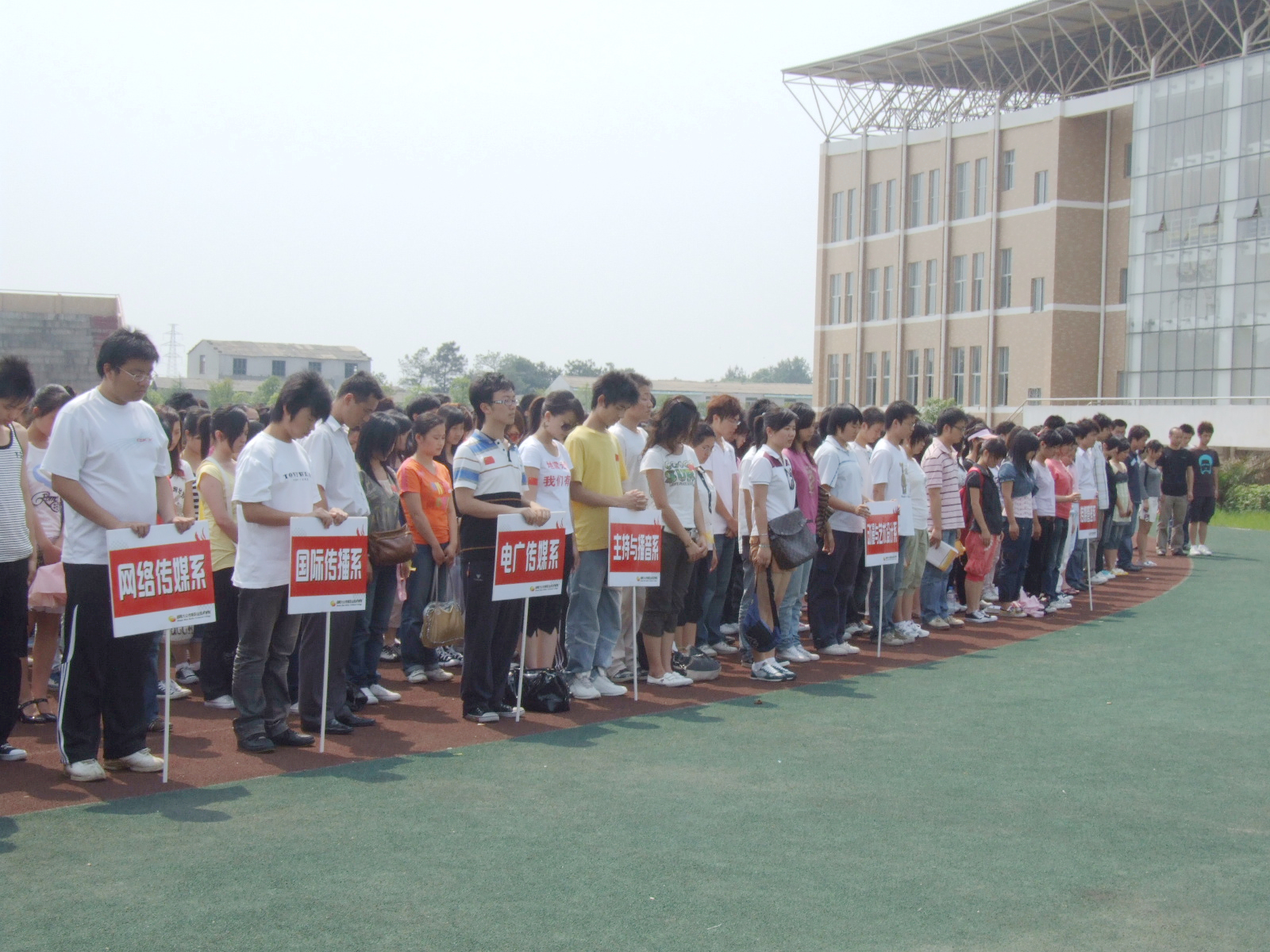 2008年5月 19日,湖南大众传媒职业技术学院师生为四川汶川大地震罹难同胞默哀。