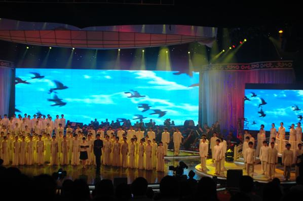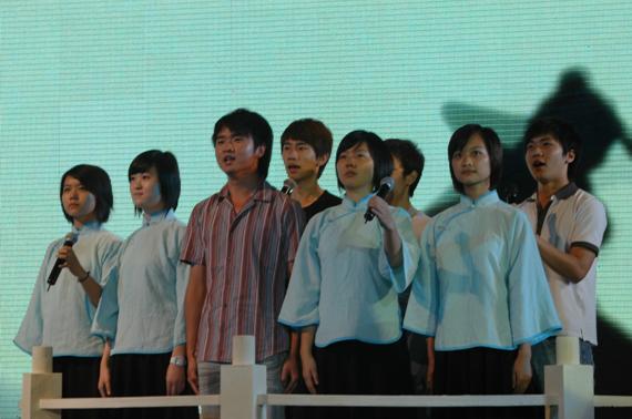 我院主持播音系学生在晚会上朗诵《可爱的中国》