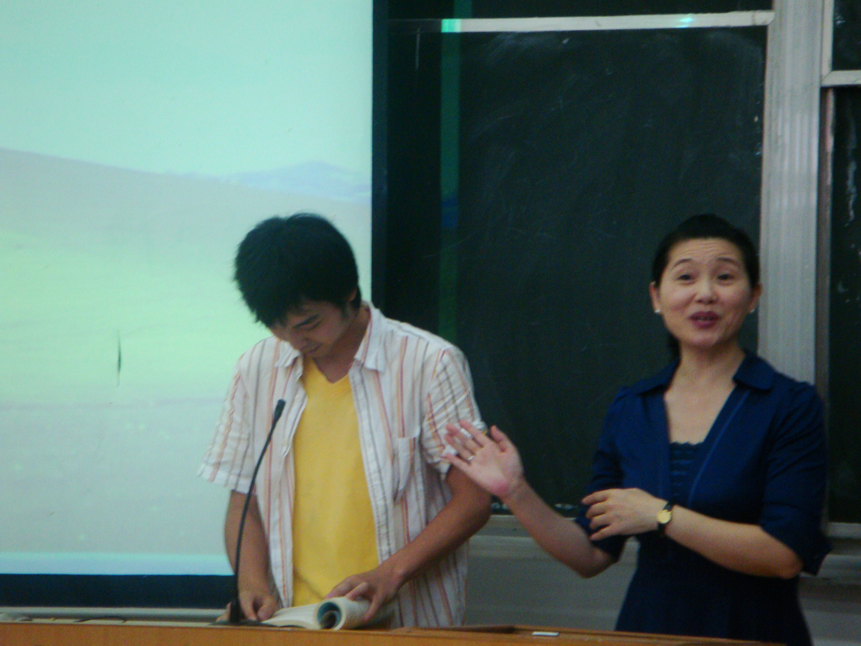 讲座上,卢莎莎老师现场与学生交流主持技巧