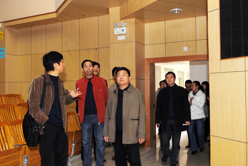 会后,专家组成员在学院领导的陪同下对我院校园进行了实地考察。首先,专家组一行来到实训楼和艺术楼分别参观了动漫与艺术设计系和主持与播音系学生实训室。