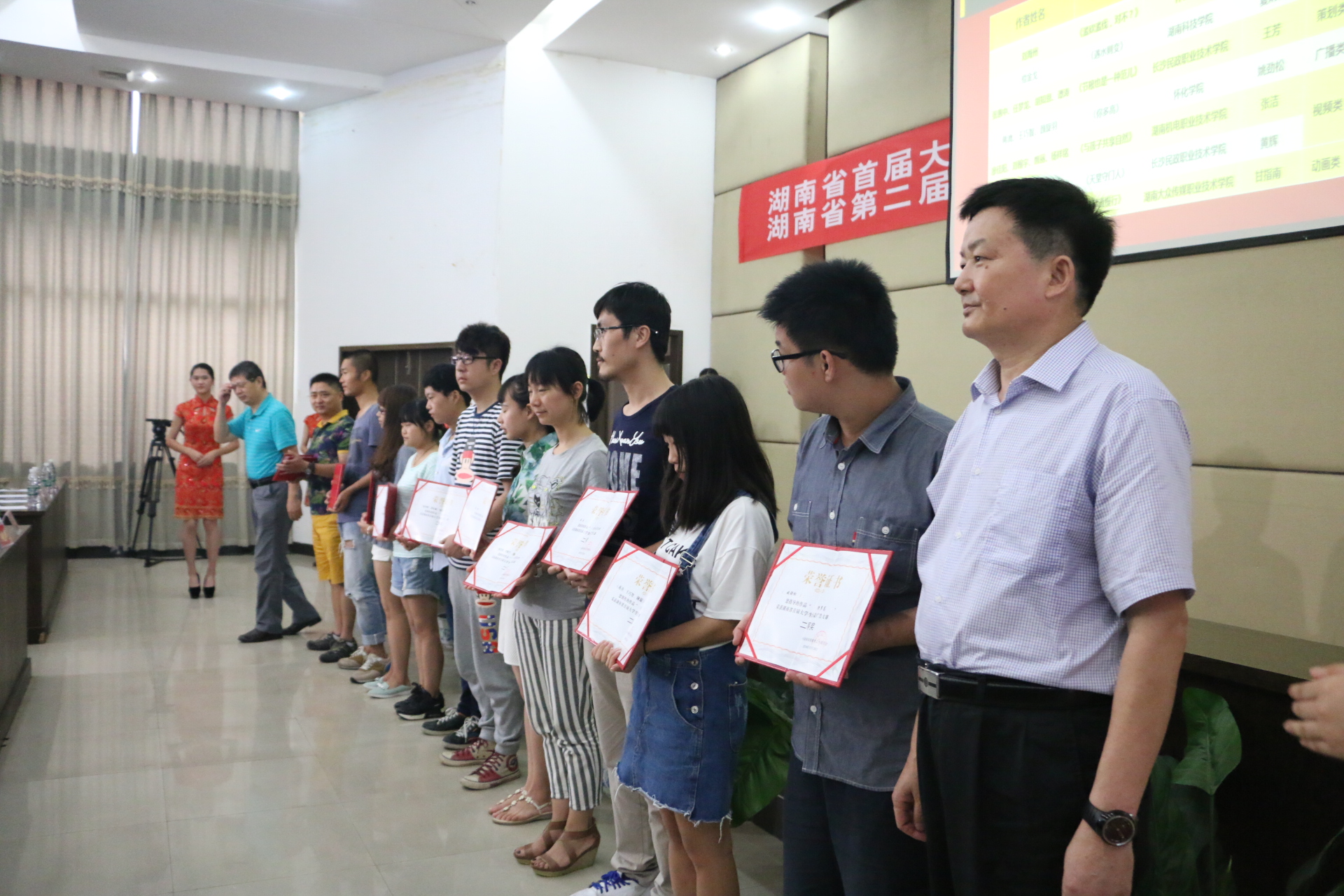 会上还对省首届大学生公益广告大赛优秀作品和组织单位进行了颁奖,我院荣获二等奖1个、三等奖1个、优秀奖2个、优秀组织奖1个。