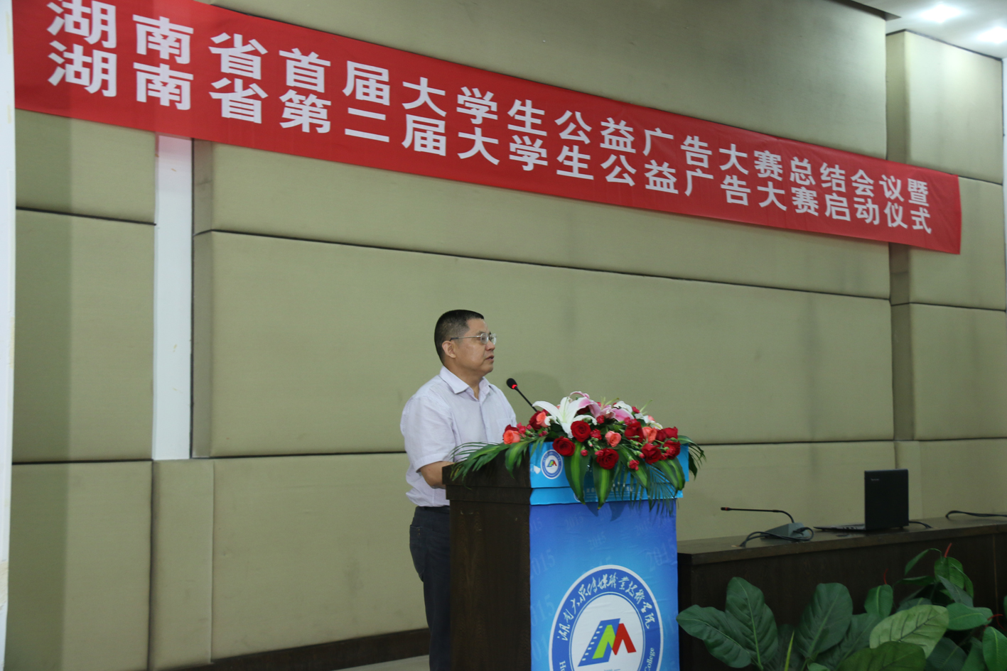 启动仪式上,省教育厅党组成员、省委教育工委专职委员陈飞跃同志讲话并宣布湖南省第二届大学生公益广告大赛正式启动。