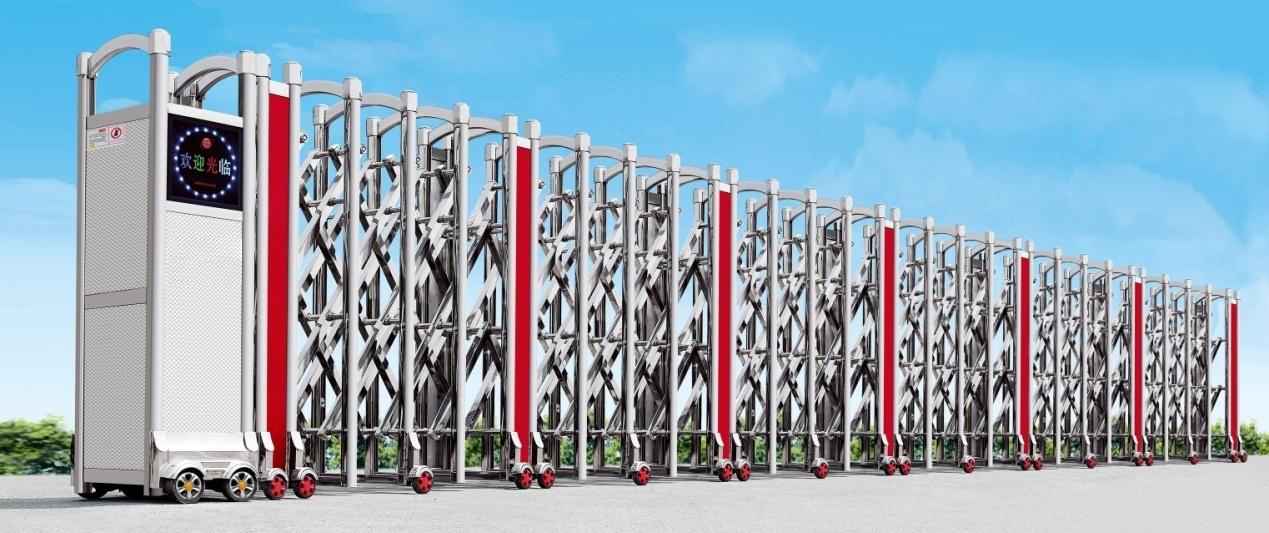 (2)具有自动保护装置:门排在运行中被物、人或车辆阻碍时,自动保护装置可设定时间内停止机组运作(红外线100%安全防碰装置)。