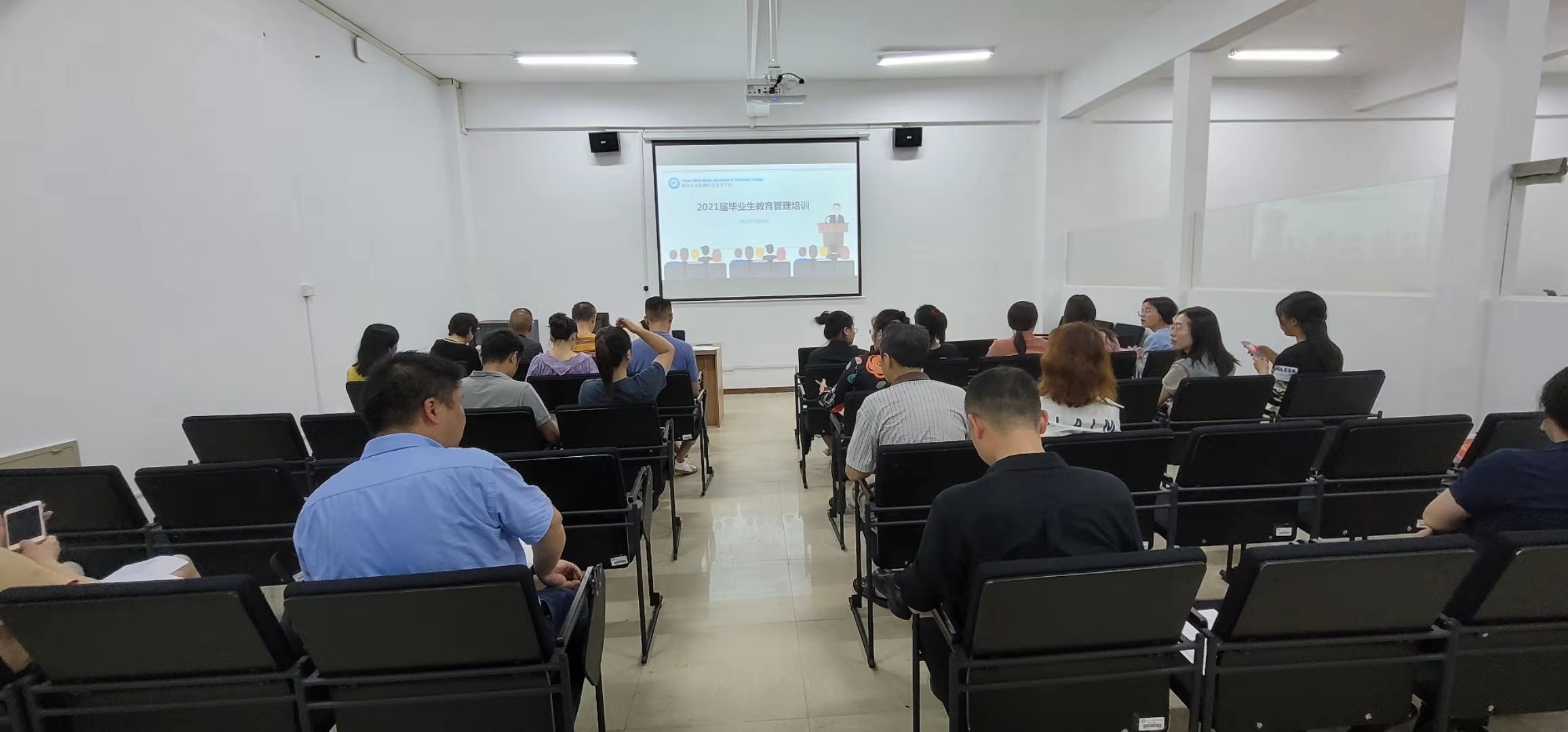2021年5月13日下午,学院在图书馆远程招聘室举办2021届毕业生教育管理培训。