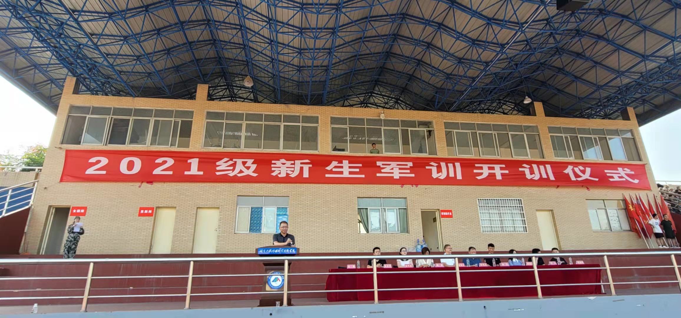 9月16日下午,学院2021级新生军训开训仪式在田径场举行。党委委员、副院长蒋民权,各二级学院党总支书记,学生工作部(处)、武装部(保卫处)相关负责人出席开训仪式,各二级学院学生干事、全体新生辅导员和教官到场。