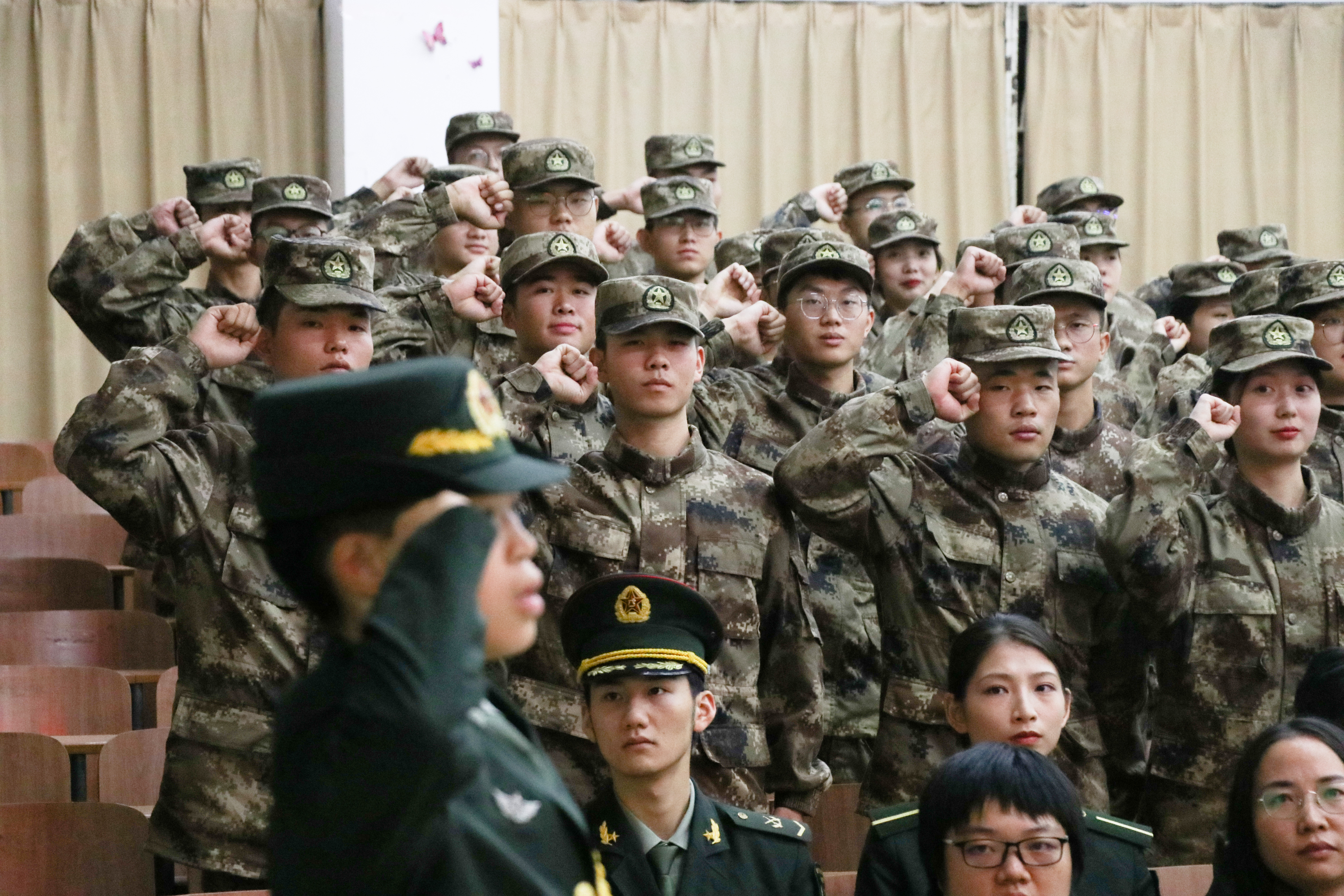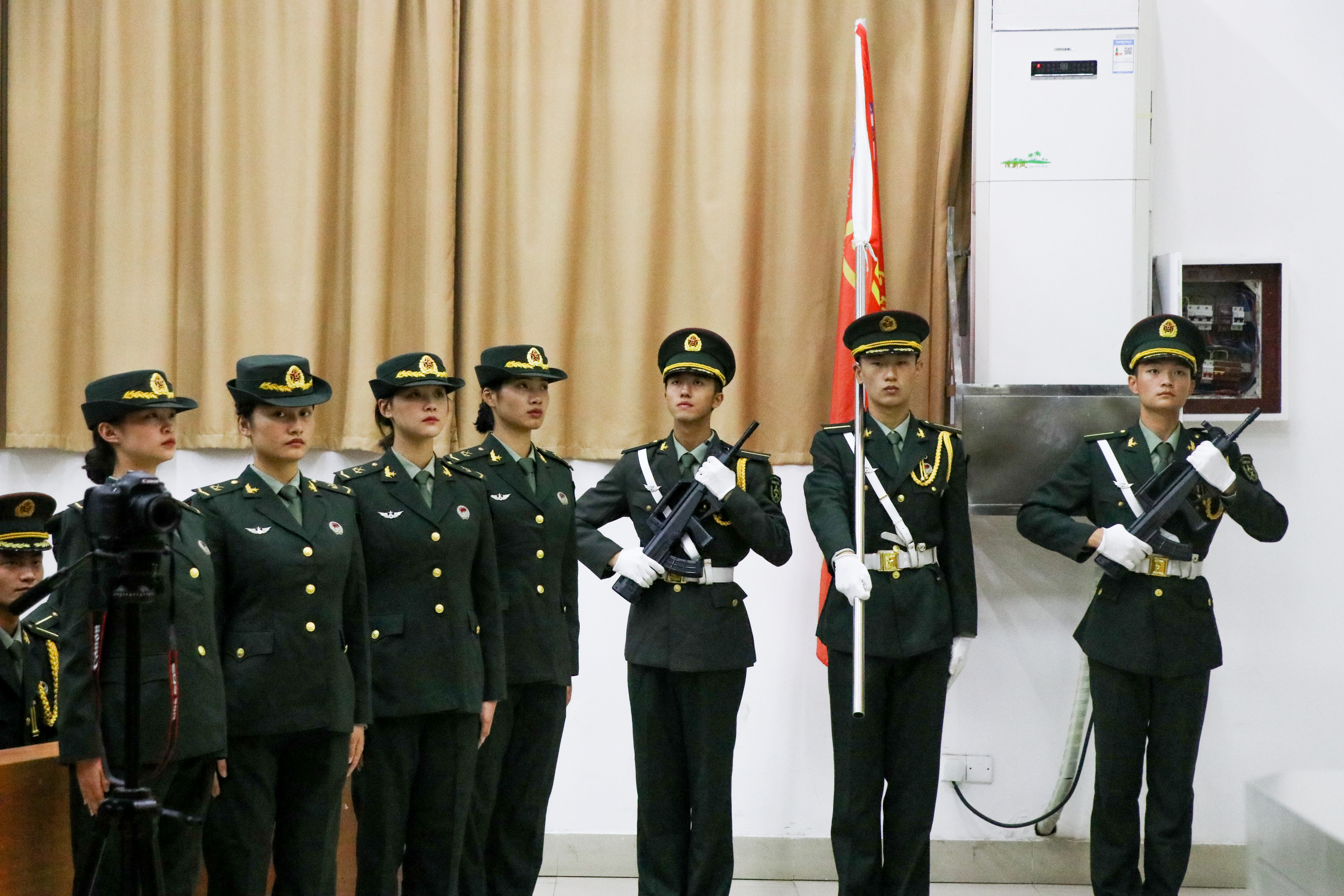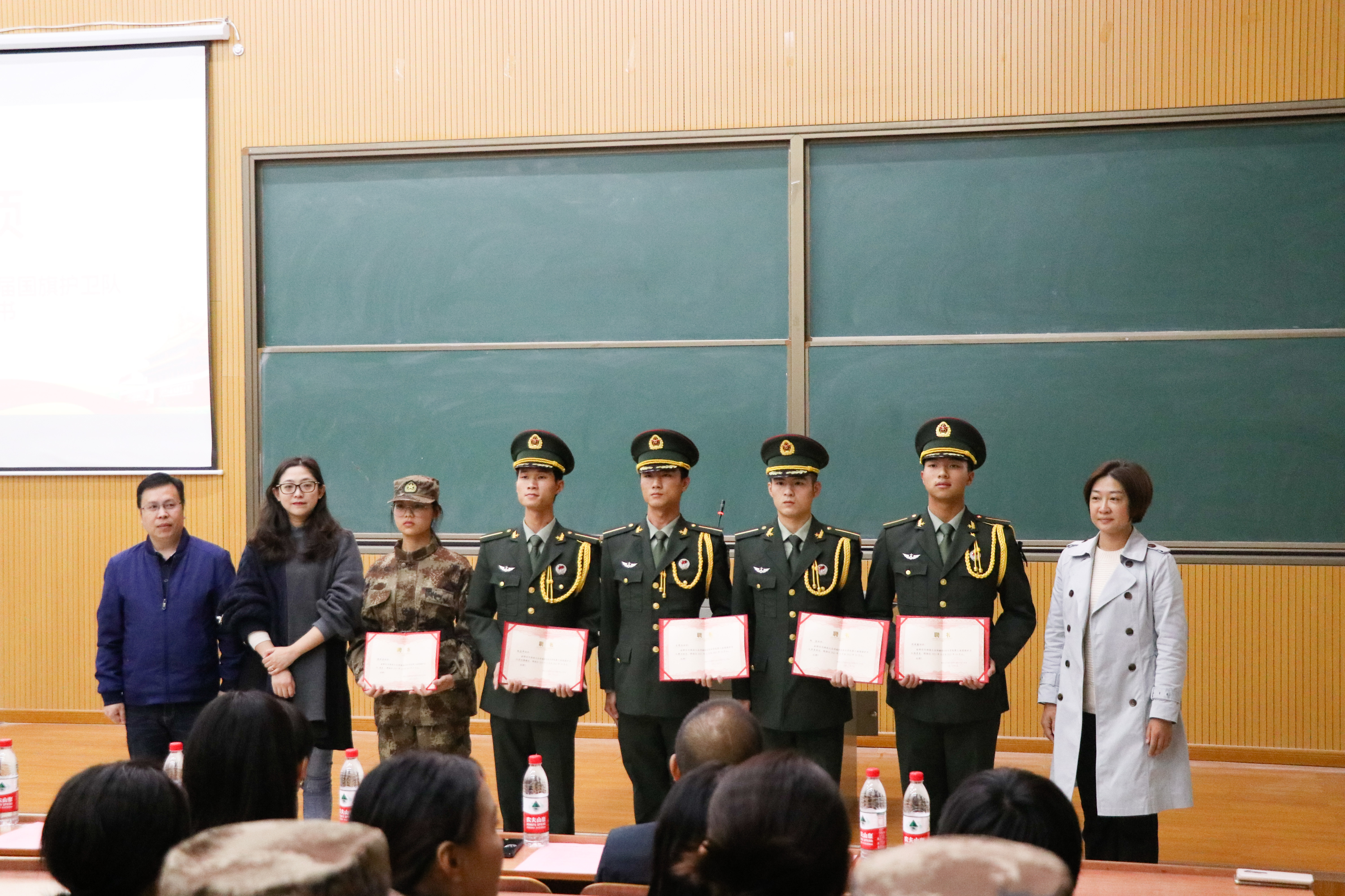 10月18日晚,学生工作部(处)隆重举行第三届国旗护卫队成立大会。学院副院长雷珺麟出席大会为“最美退伍老兵”颁发荣誉证书并发表讲话,学生工作处处长彭涛宣布第三届国旗护卫队就职命令,新闻与传播学院党总支书记钱英、视觉艺术学院党总支书记徐可晶、国际传播学院党总支书记何卫为第三届国旗护卫队代表颁授聘书,会议由学生工作处副处长任春梅主持。第二届和第三届国旗护卫队全体成员、长沙民政职业技术学院国旗护卫队代表、我院传媒青年讲师团代表参加。