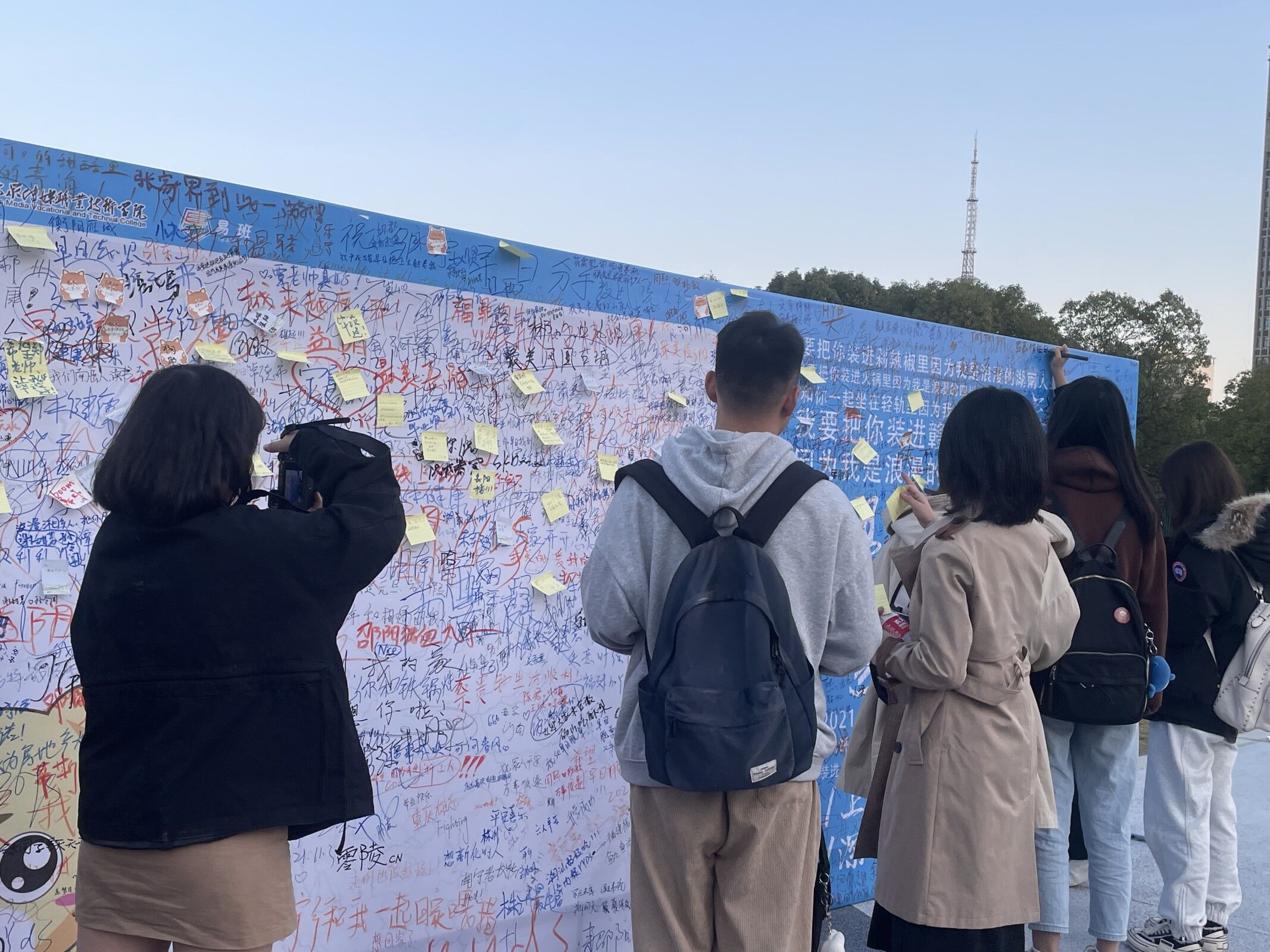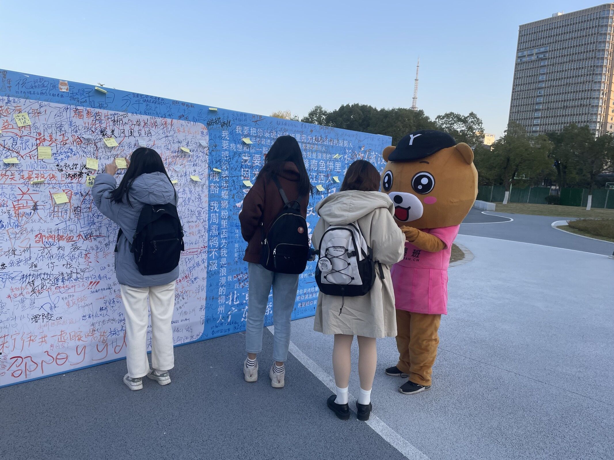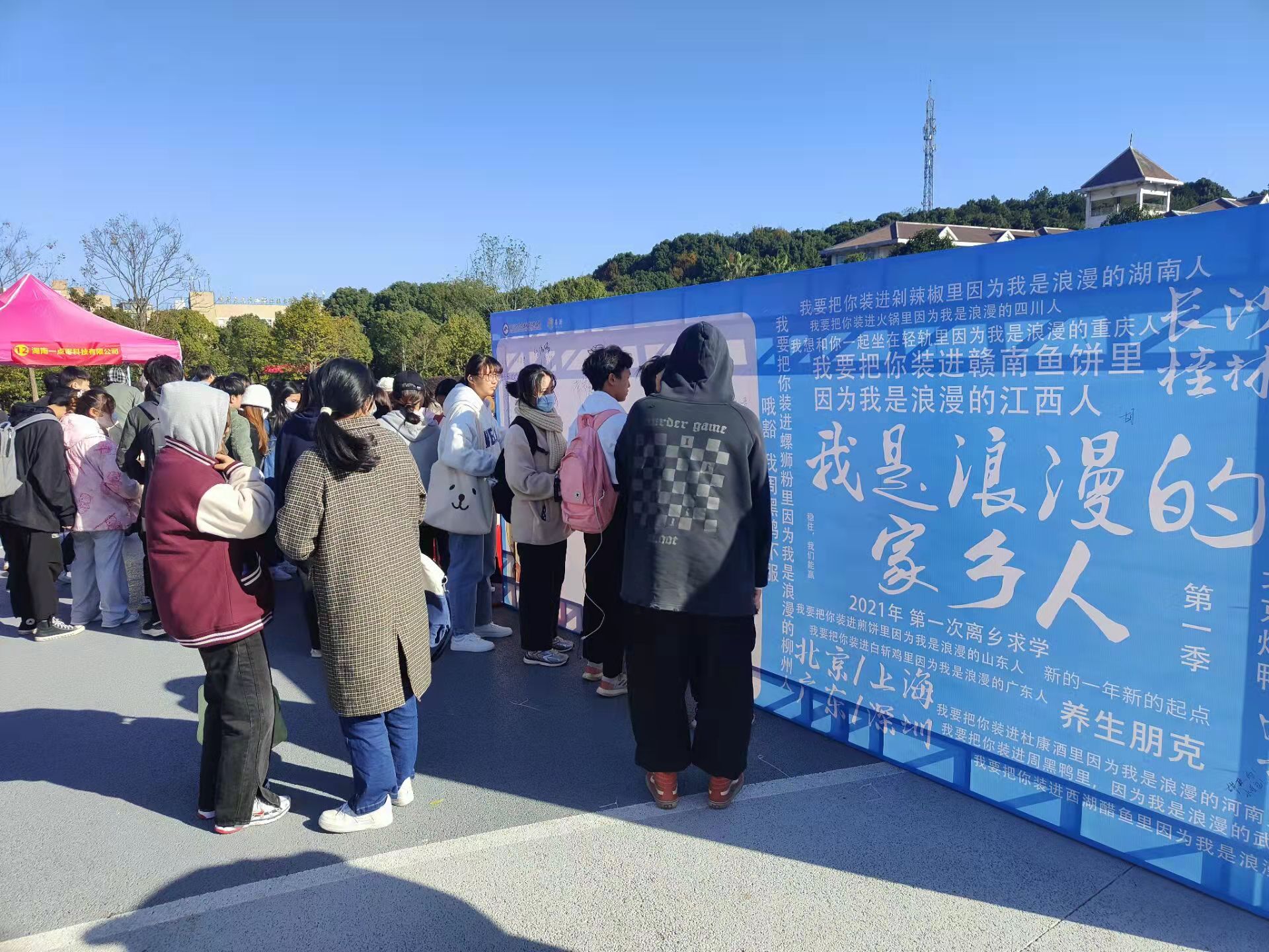活动现场布置了两块大型展板,供学院师生书写与家乡有关的祝福与赞美,抒发对家乡的思念之情。除了展板书写外,活动现场还安排了吉祥物合影、表白家乡视频录制等互动,为气温渐冷的冬季注入一股暖流。