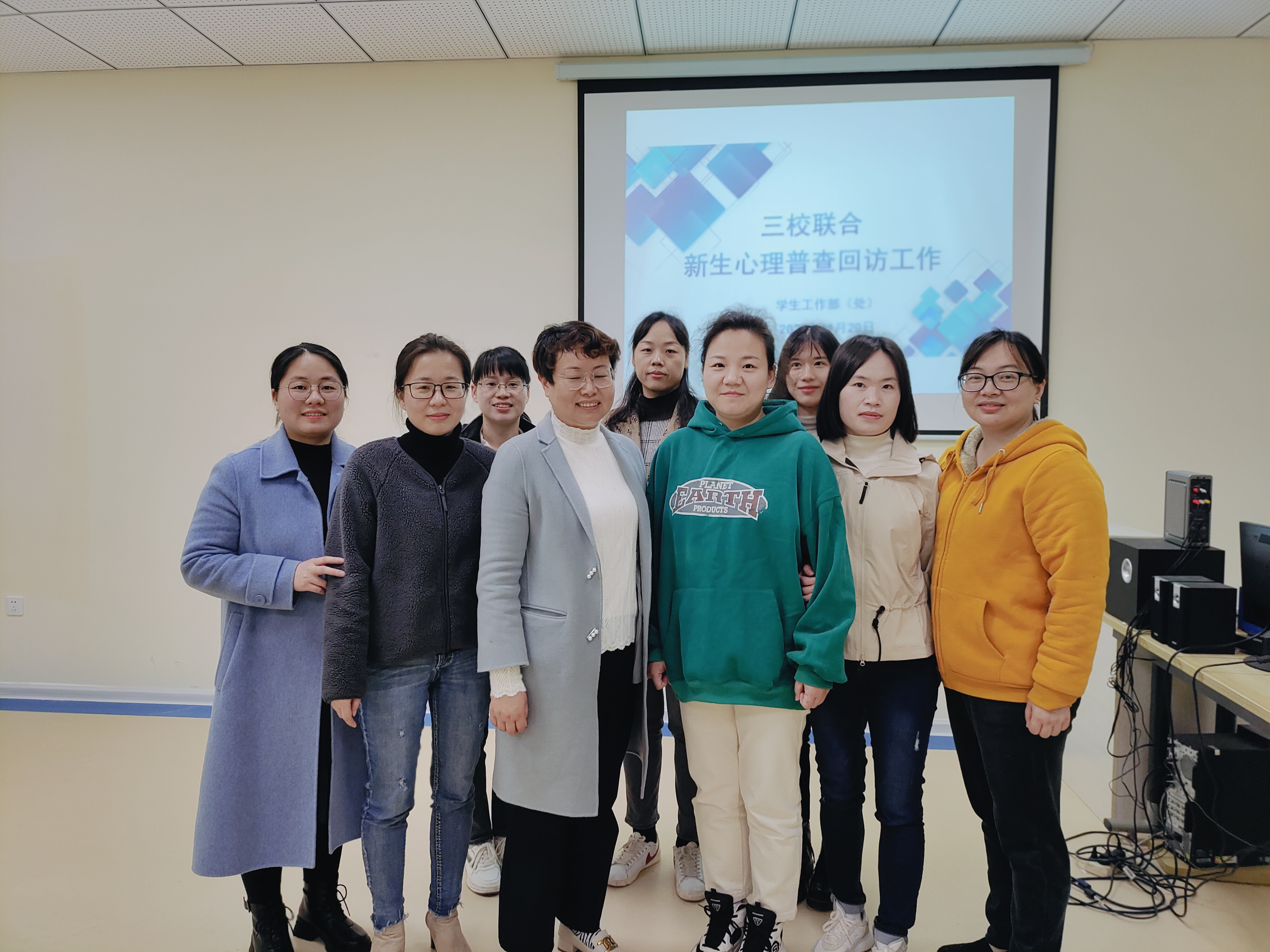 11月20日全天,来自我校和湖南省心理健康教育示范中心对口协作学校湖南体育职业学院、湖南外贸职业学院的十余名专兼职咨询师齐聚心理健康教育与咨询中心,开展三校联合新生心理普查回访工作。