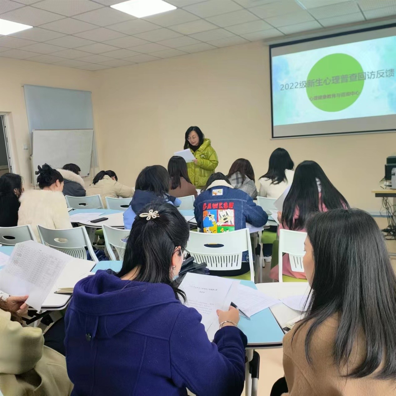 会上,胡健老师通报了新生心理普查工作及回访工作各二级学院的具体情况;对未参加回访的学生要求辅导员和心理专干进行谈话及排查;对心理健康教育与咨询中心标注进入一级预警库的学生需填写《二级学院心理危机预警学生必要信息内容》完善各项信息,并加强动态管理;为学生的身心健康保驾护航。