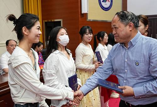 党委书记李三福现场向2023届毕业生代表郑重颁发毕业证书