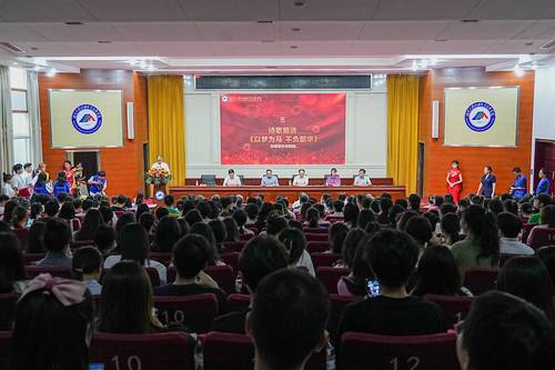 随后,学校传媒青年讲师团的同学们为毕业的学长学姐们送上充满温情的诗词朗诵《以梦为马,不负韶华》。