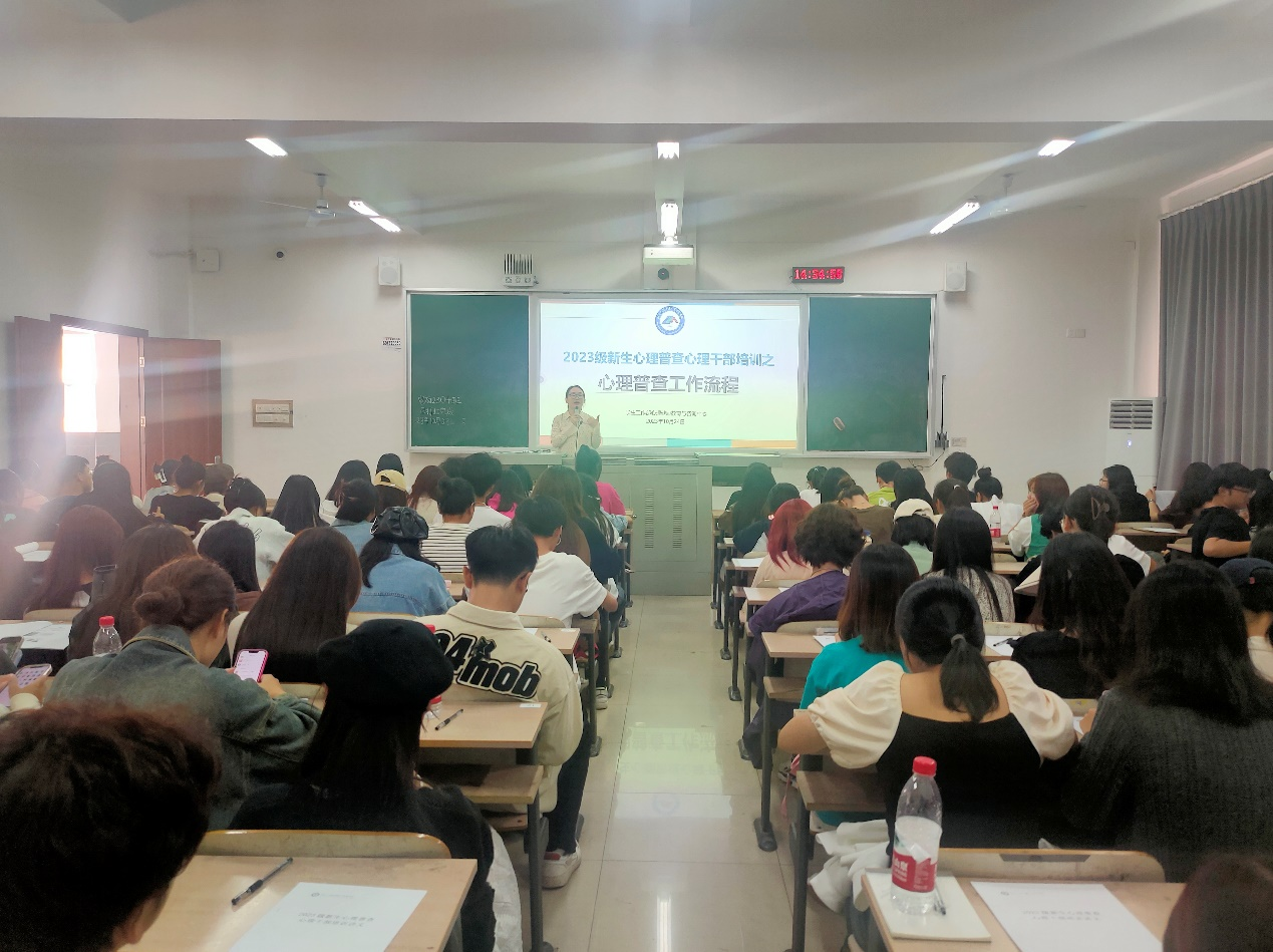 培训由心理中心郭文姣老师主讲,她分别从心理干部的角色和职责、心理普查的目的和意义、心理普查的工作流程和注意事项这四个方面进行了讲解,并示范了学生心理普查系统的操作流程,说明了普查工作纪律,并对同学们提出的问题进行了解答。