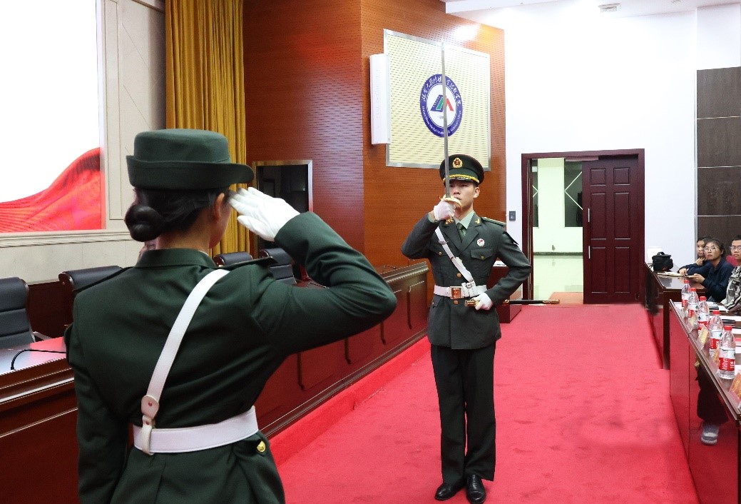 116日晚18:30,在我校图书馆学术报告厅隆重举行校国旗护卫队换届大会暨四周年庆典活动。学校党委委员 副校长朱丹、学生工作部相关负责人、各二级学院党总支副书记、学生工作部老师代表、二级学院老师代表出席庆典,我校国旗护卫队全体成员、长沙师范学院和湖南机电职业技术学院军事爱好者协会国旗护卫队代表、我校学生会、青年讲师团、传媒新青年、易班工作站等校级组织代表以及各二级学院团学会代表等参加庆典活动。