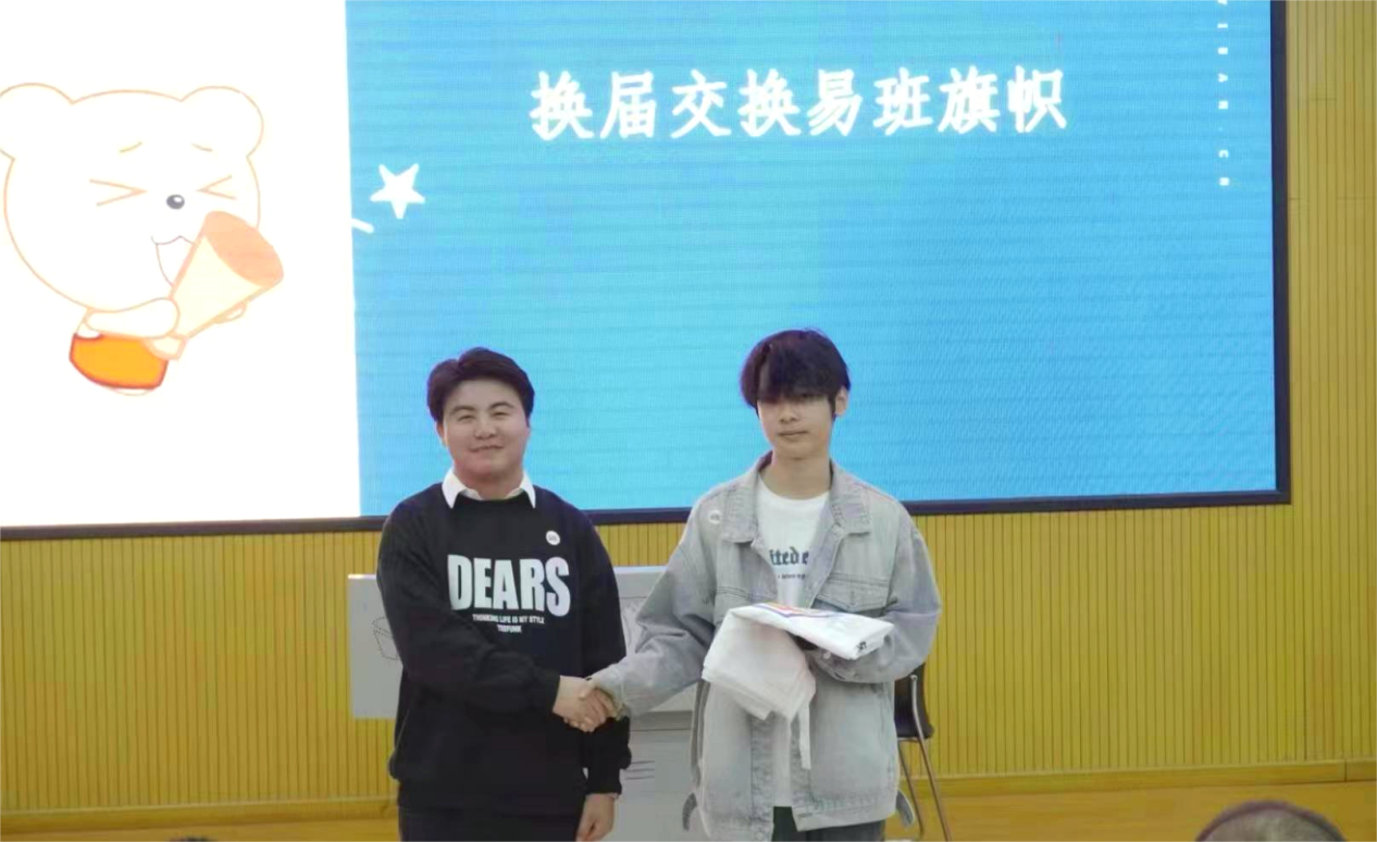 两任站长通过交换易班旗帜完成了交接。旗帜是信仰的旗帜,更是奋斗的旗帜。在参会师生的见证下,易班学生工作站将在信仰与奋斗的飘扬旗帜下不断要求自我,完善自我,砥砺前进。