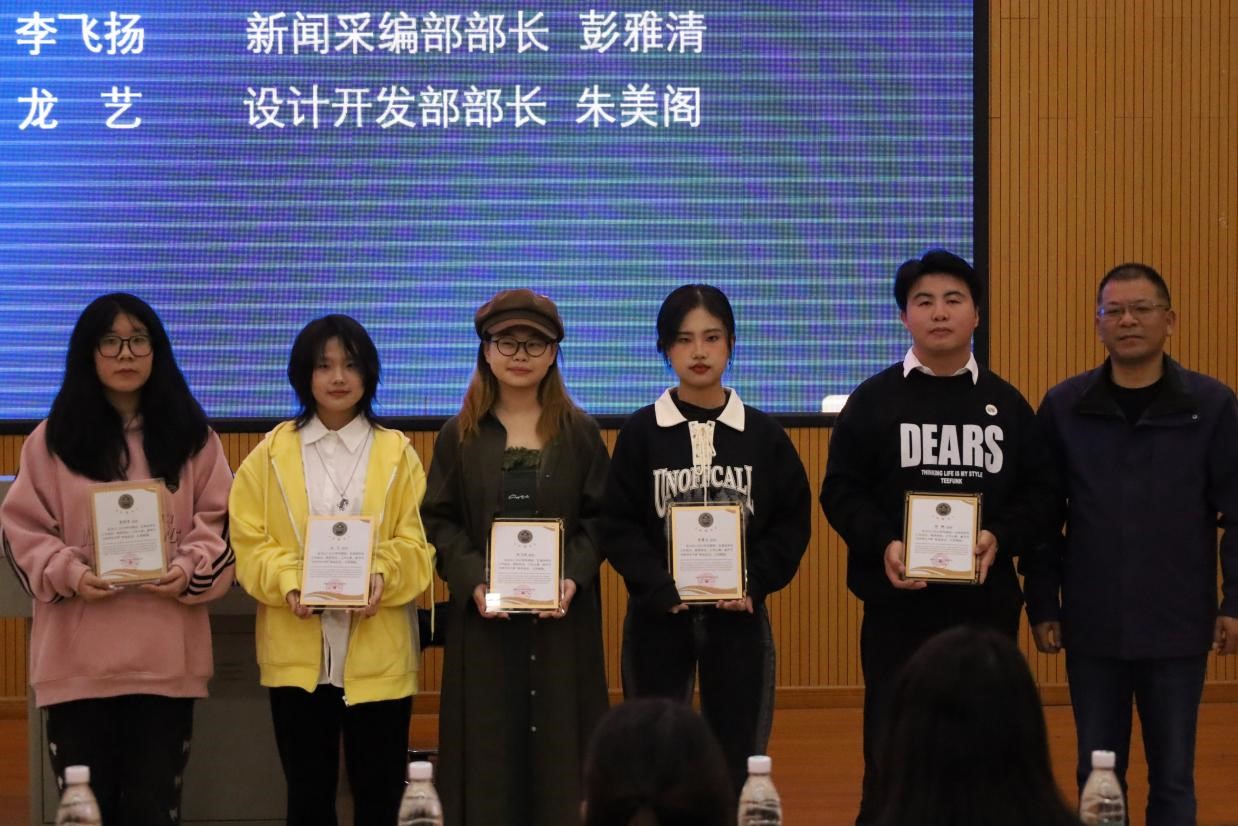 易班学生工作站指导教师曾煜恒宣布了第五届易班学生工作站的干事名单,感谢了学校各级领导对易班工作站的关心与支持,表示将带领易班工作站不断创新工作方式,提高工作水平,为学校师生带来更精彩的活动。