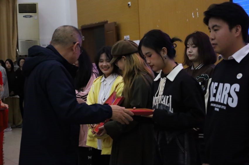 在庄重大气的颁奖乐下,会议进入颁奖环节。朱丹副校长为第四届易班学生工作站成员颁发聘书,彭涛部长、易国强副部长、各二级学院党总支副书记等领导分别为优秀干部、优秀易班委员代表、优秀干事颁发证书。