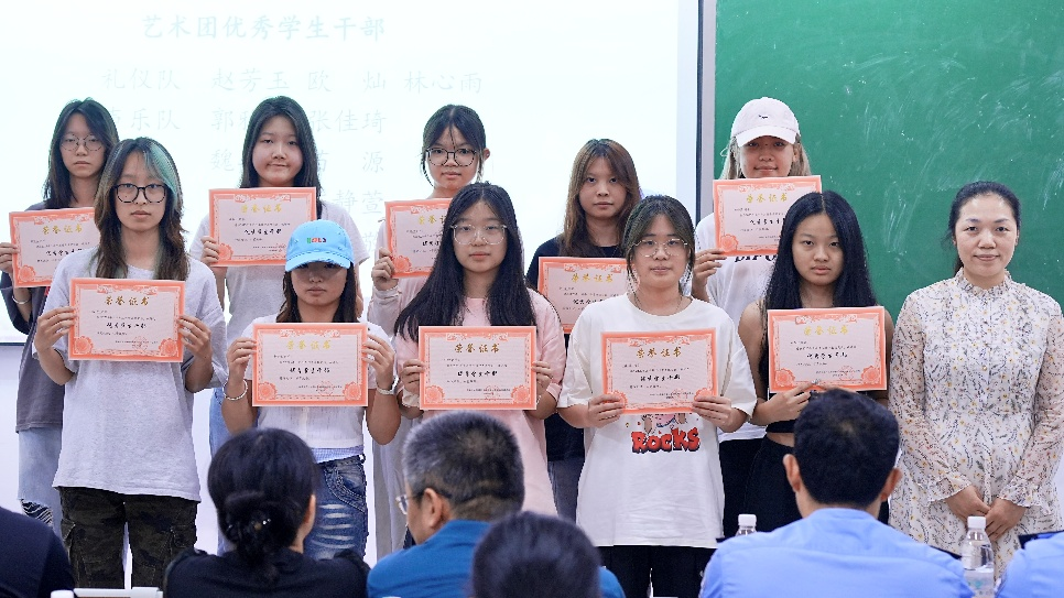 表彰环节。学院领导及与会嘉宾分别为本学年表现突出的团学会优秀学生干部、光影青春志愿服务团队优秀志愿者、学院艺术团先进个人以及在校级篮球赛事中取得优异成绩的运动员颁奖,以表彰他们在各自领域所展现的杰出能力和为学院赢得的荣誉。