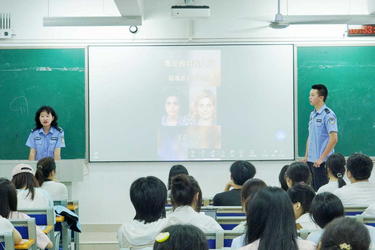 学院党总支书记刘小华、副院长熊雯婷、党总支副书记李洁、学工办主任李艳梅团总支书记邓芳芳及学生代表参与活动。湖南警察学院净毒宣讲团成员担任主讲。