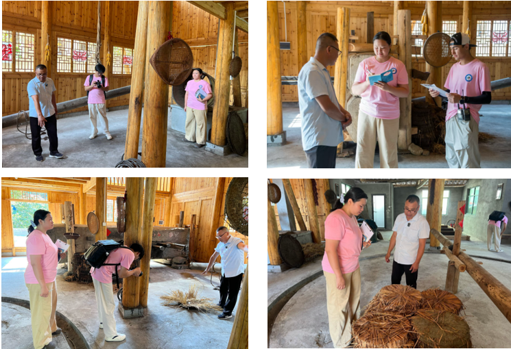 在村党总支书记、村主任佘万伟的带领下,实践团队师生探访了朗江村仅存的古法榨油坊。这座油坊完整保留了传统榨油工艺,是怀化市第七批非物质文化遗产。佘万伟介绍:“会同县自古盛产茶油,明清时期依托洪江古商城的商贸往来,这里的茶油曾远近闻名,曾被称为‘金油’。”