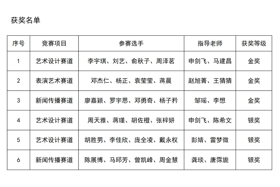 我校自备赛以来,学校领导高度重视,科学部署;同学们团结协作、刻苦训练,指导老师们全心投入、悉心指导;学校各职能部门也提供了全方位的支持,有效保障了备赛、参赛工作的顺利进行。最终在此次世赛“艺术设计赛道”中斩获1项金奖和2项银奖;在“表演艺术赛道”中斩获1项金奖;在“新闻传播赛道”中斩获1项金奖和1项银奖。