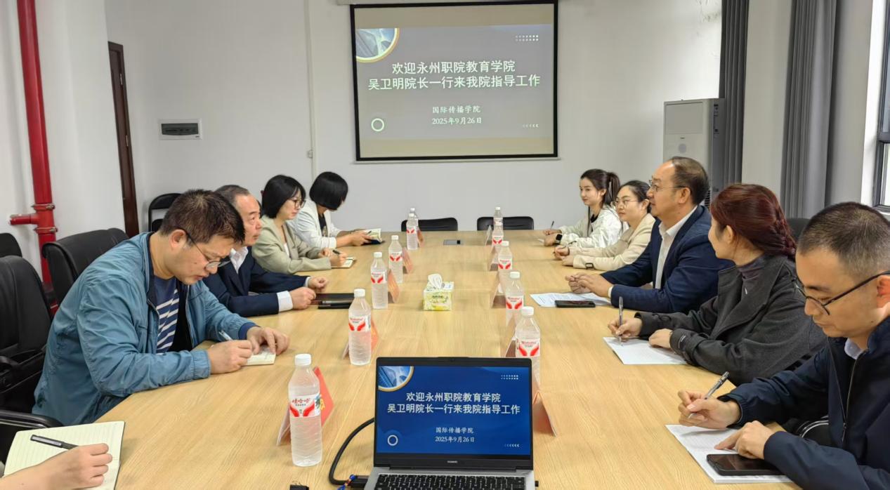 9月26日上午,永州职业技术学院教育学院吴卫明院长一行5人来我院调研交流。双方围绕“专业转型与高质量发展”这一主题进行了深入探讨。座谈会由黄林非院长主持,商务英语、现代文秘以及研学旅行管理与服务等专业的负责人出席会议。