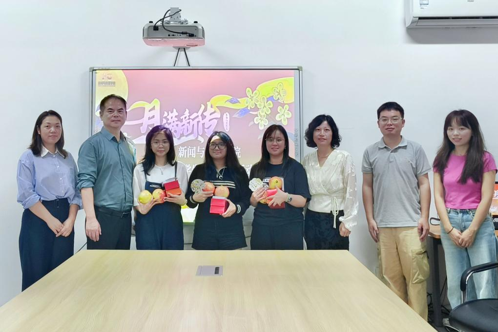 学院党总支书记刘小华在总结发言中,再次对国际留学生的到来表示欢迎。“新传院就是大家在中国的一个‘家’,每一位老师、同学都是亲人。”刘小华书记鼓励同学们主动交流、勇于表达,成为连接中外文化的友好使者。活动最后,学院领导为留学生们送上了象征团圆的中秋月饼和寓意团结的石榴,以一份份精致礼物,传递出浓浓的温情与祝福。
