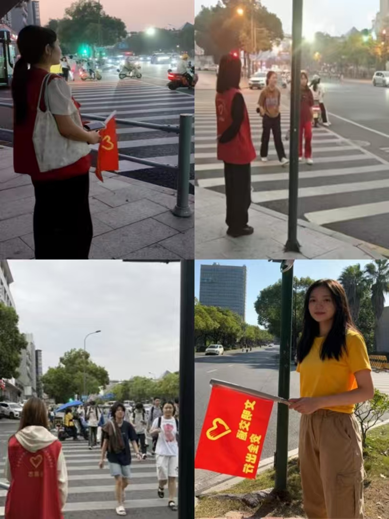本次活动共招募72名学生志愿者,覆盖校园东、西、南、北四个主要出入口及周边重点路口。在早晚高峰的繁忙路段,志愿者们统一着装、精神饱满,耐心引导行人车辆,及时劝阻不文明行为,有效缓解了校园周边的交通压力,营造出更加安全、有序的出行环境。