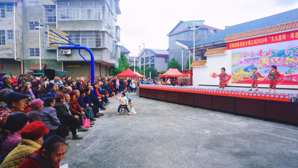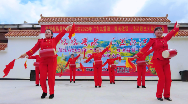 活动在气势磅礴的鼓舞拉开序幕,村文艺队演员们身着盛装,将对老人的敬爱融入歌声与舞姿。侗族歌谣、民俗舞蹈等极具民族特色与乡土风情的节目轮番登场,精彩的表演让活动现场洋溢着喜庆与崇敬的氛围,赢得台下老人们热烈的掌声。85岁的李奶奶笑容满面地说:“今天的节目好精彩,在家门口就能看到这么好的演出,实实在在感受到了党和政府的关心和温暖!”