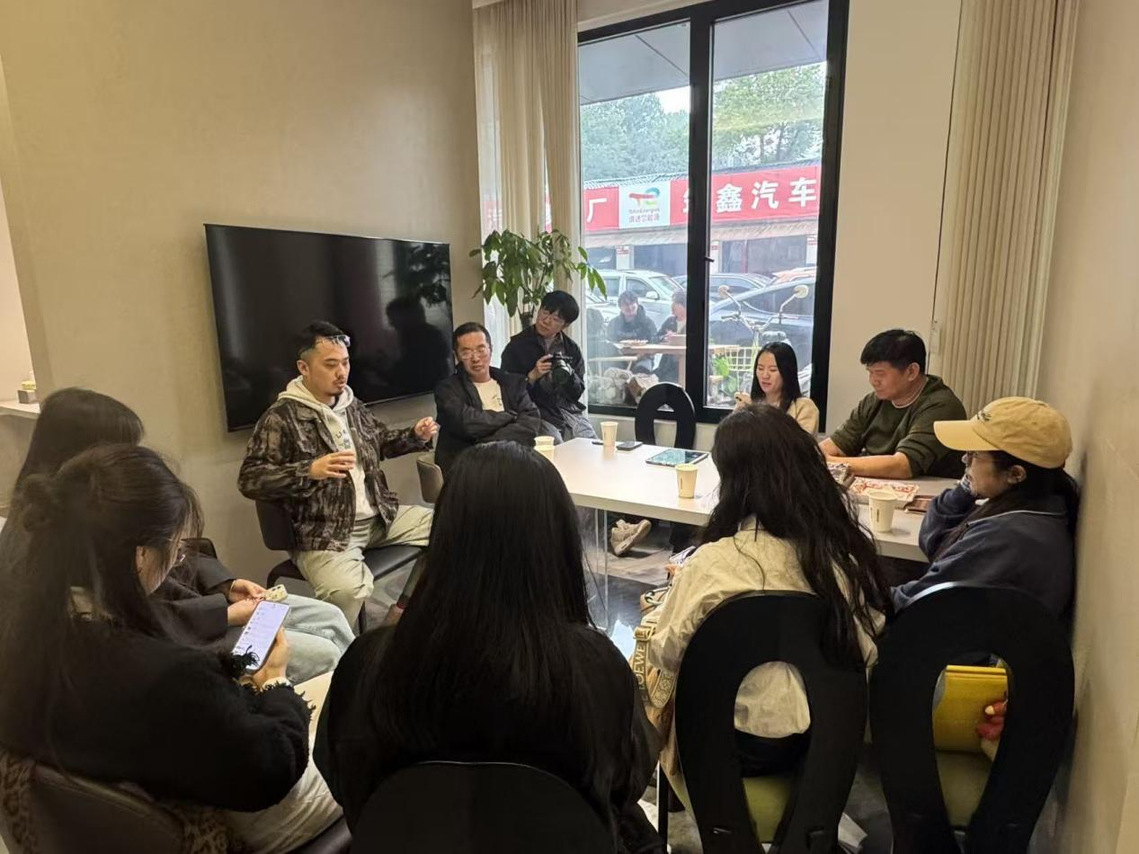 此次活动汇聚企业、学校教研组及学生三方代表,形成协同发力的良好局面。企业方面,湖南80度原创设计公司合伙人、长沙起风了品牌设计有限公司总经理及风马牛商业设计公司合伙人杨耀轩,80度原创设计创始人飞龙、风马牛商业设计负责人向咫以及其他相关核心企业成员参会,分享行业前沿案例并给出用人建议;学校教研组11名成员全员参与,在教研室主任彭婧、专业带头人倪栋带领下,围绕专业建设、课程优化与企业深度对接;专业优秀学生戴永权随行,并做好会议记录,通过旁听研讨、参观企业,了解岗位流程与能力要求,明确学习方向。