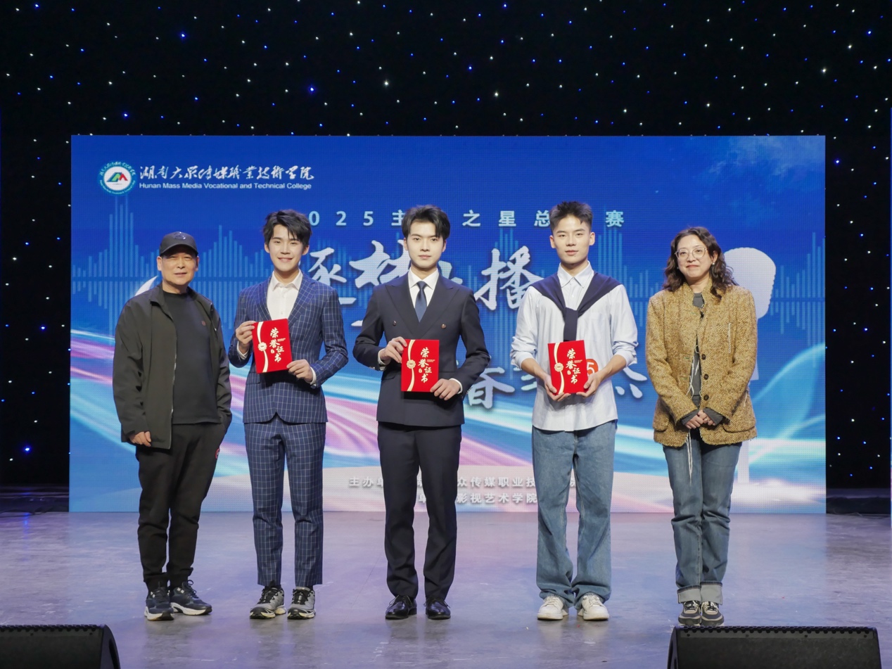 本次大赛特邀湖南省播音主持研究会秘书长、省语言文字工作者协会副会长、湖南卫视主任播音员何娟,湖南教育电视台主持人曹丽姿,以及湖南卫视天气预报首席气象主播黄健担任评委。三位专家从语言表达、内容构思、舞台表现力等多个维度对选手进行综合评判。比赛尾声,何娟老师作总结点评,她高度肯定了选手们的专业素养与舞台表现,并鼓励大家坚守语言工作的初心,在未来道路上不断精进专业、传递声音力量。
