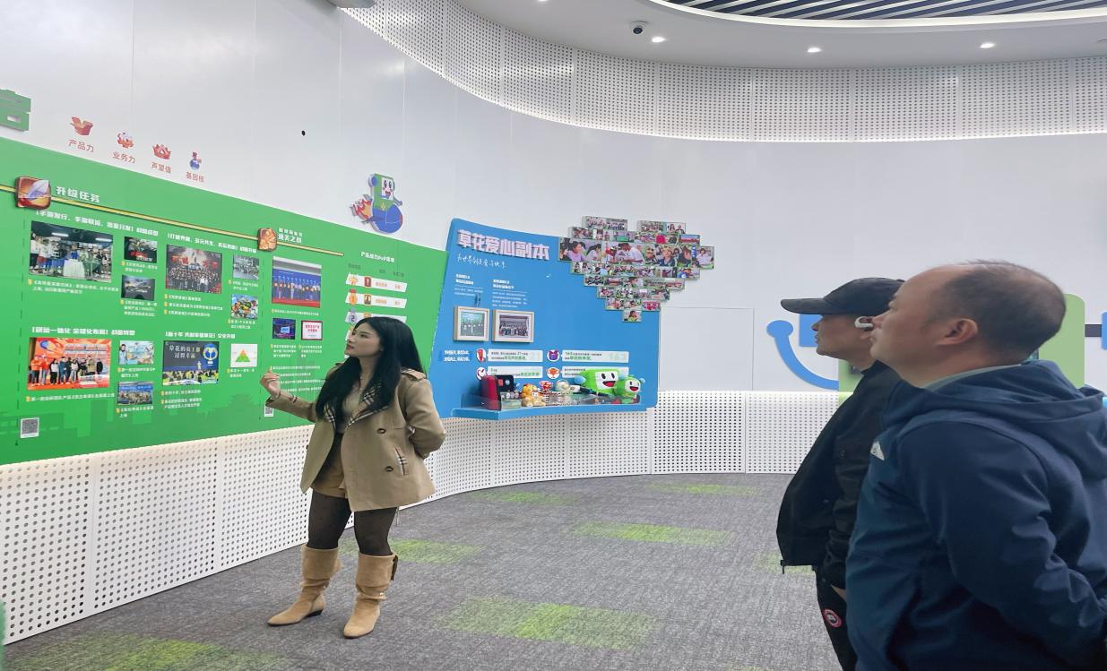 调研团首先抵达草花互动匠心楼,参观企业展厅,对游戏直播的场景搭建、内容策划、数据监测等实操环节进行细致了解,直观感受数字内容产业的前沿运作模式。