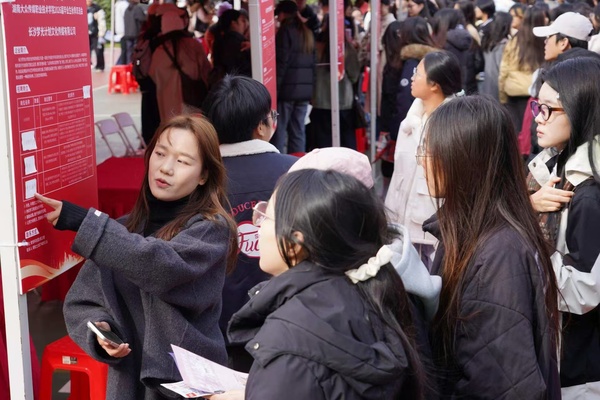 作为“智慧潇湘”建设在校园的生动实践,本次双选会首次联合长沙市开福区人社局设立“政策咨询专区”,现场为毕业生解读人才落户、住房补贴、创业扶持等政策,把公共服务直接送到学生手中,助力“才聚大众”落地见效。