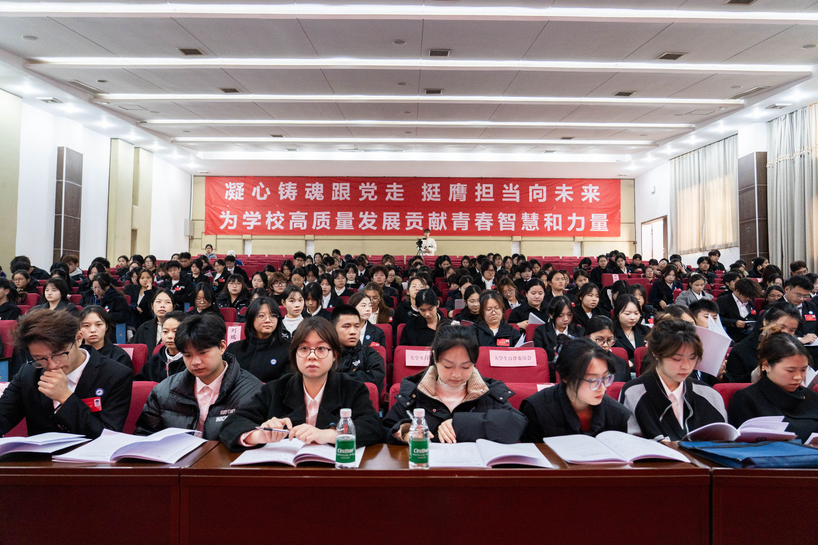 谢景伟发表讲话,他充分肯定了上一届学生会的工作成绩,并对全校青年学子提出四点希望:以理想为帆,做“凝心聚力”的追梦者;以服务为责,做“连接师生”的践行者;以实干为基,做“赋能成长”的引领者;以规矩为尺,做“严于律己”的示范者。他勉励全体代表勇担使命,将个人理想追求融入学校事业发展大局。