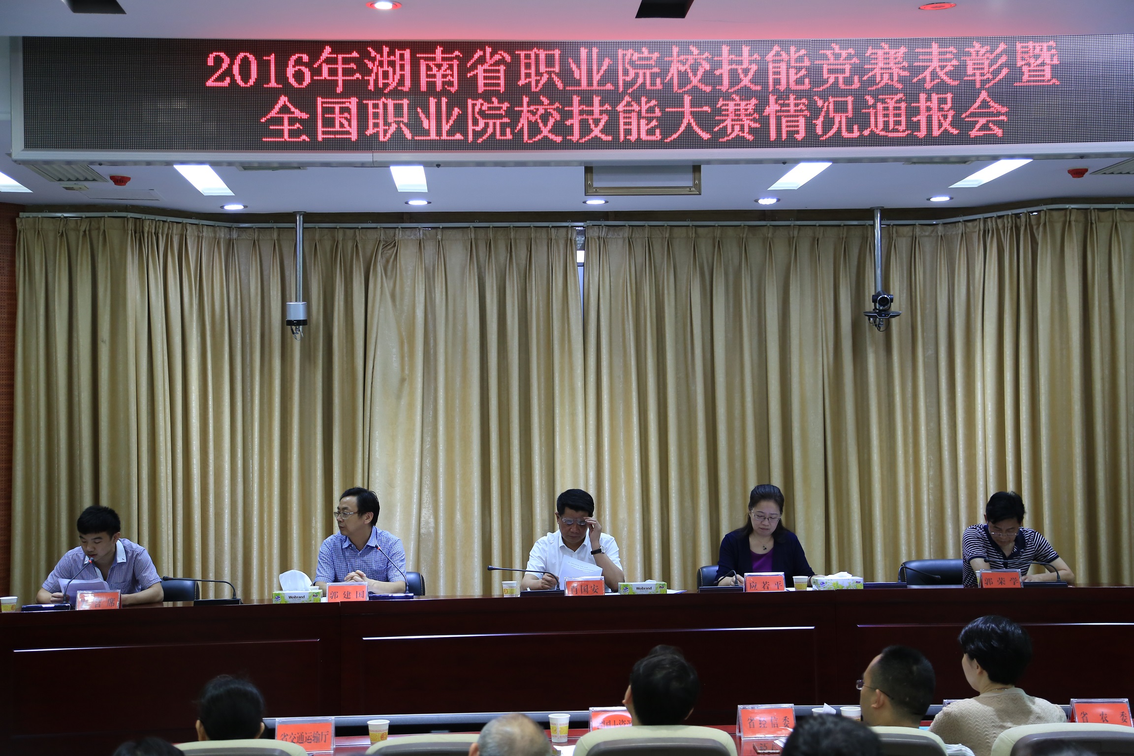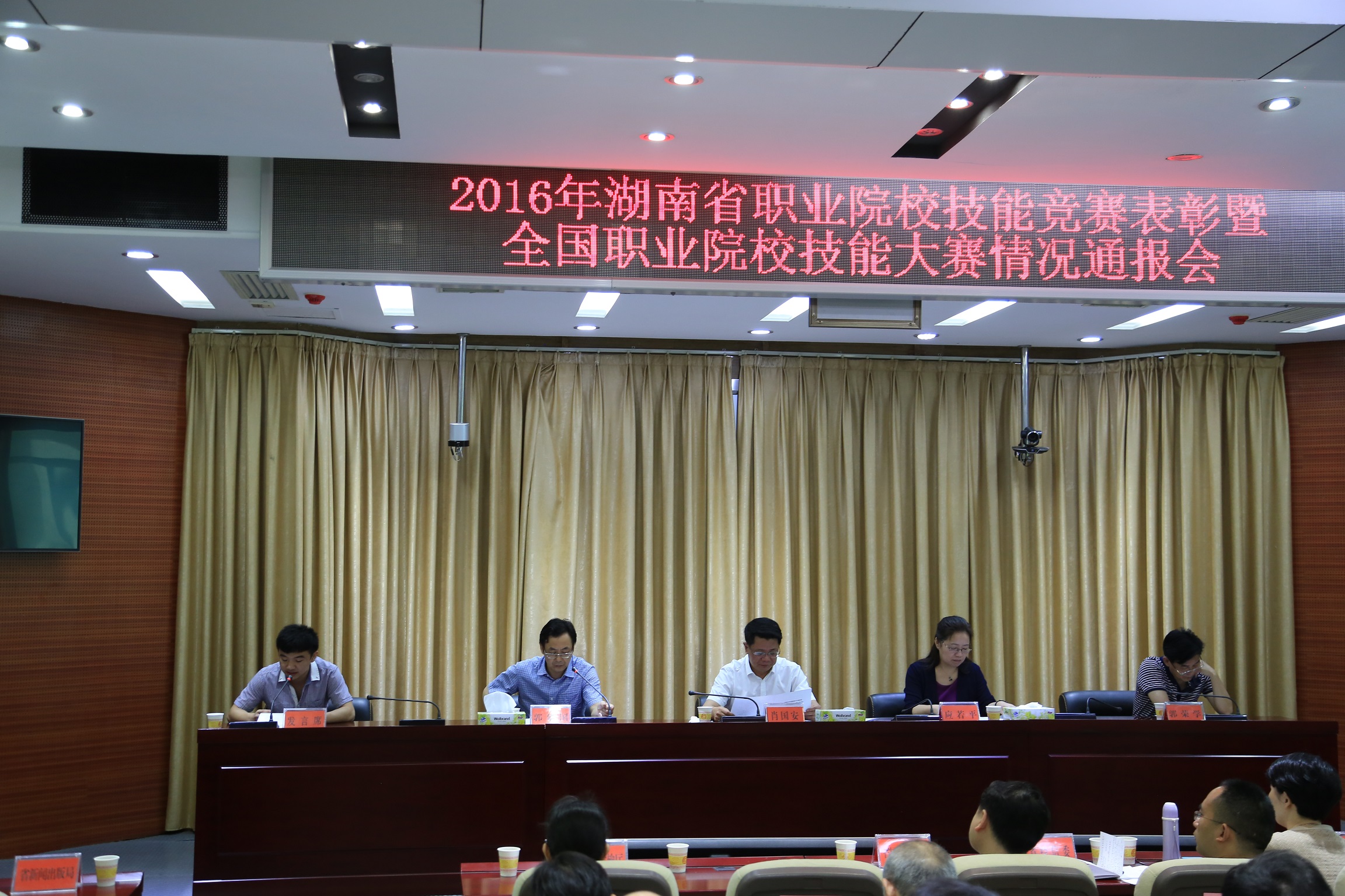 6月17日,湖南省职业院校技能竞赛表彰暨全国职业院校技能大赛情况通报会在省教育厅办公楼一楼会议室隆重举行。会上,省教育厅厅长肖国安对我省职业院校代表团在国赛中取得的佳绩表示祝贺和慰问。应若平副厅长通报了2016年度全国职业院校技能大赛有关情况。学院计算机网络技术专业1301班石海赟同学,作为唯一获奖学生代表在省技能竞赛表彰大会上作典型发言。