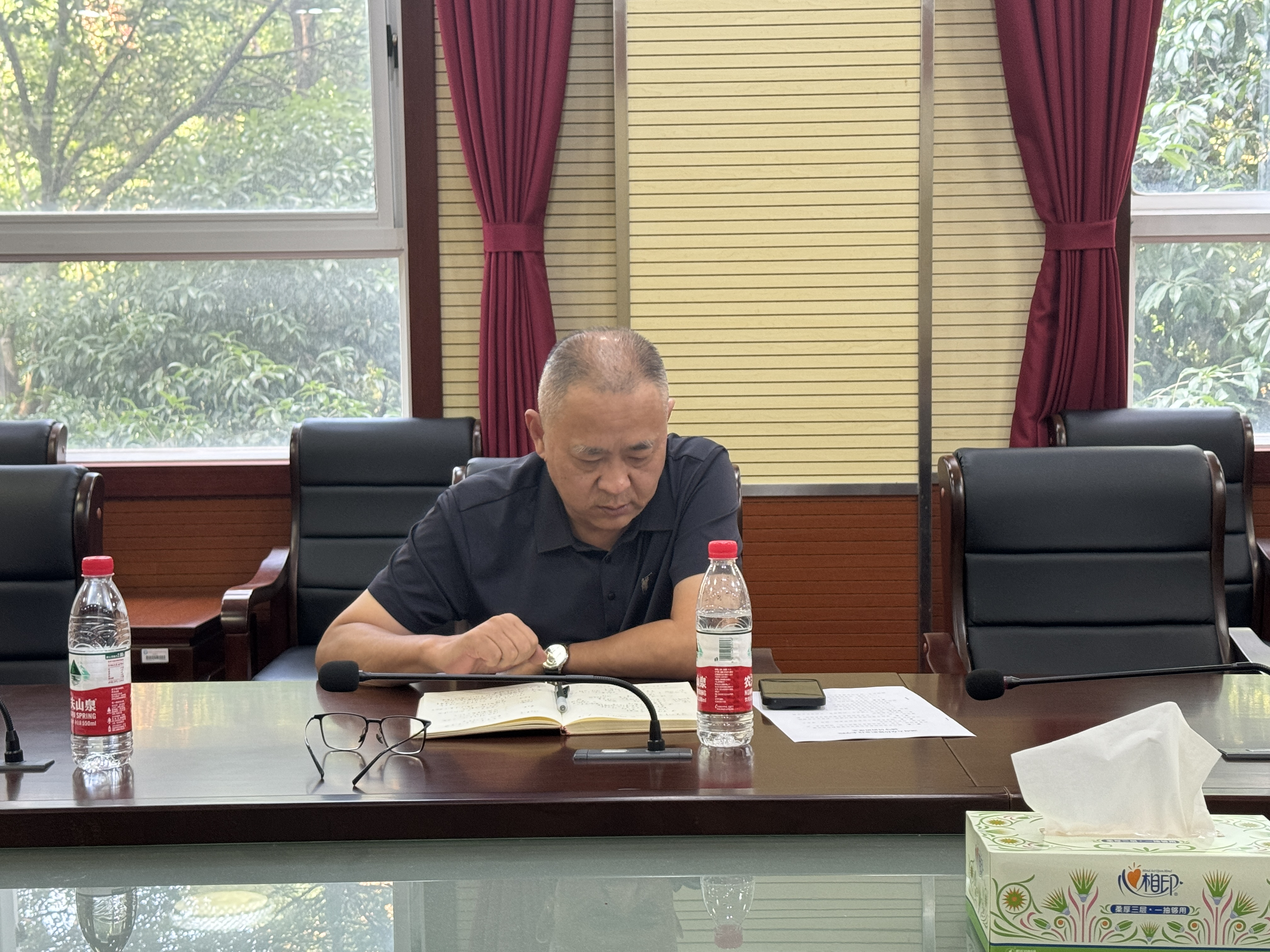 保卫处副处长周拥军着重强调了安全教育工作的重要性,特别是在国庆长假期间,各学院务必摸清学生去向,加强防电诈等安全教育,确保每位学生都能平安度过假期。