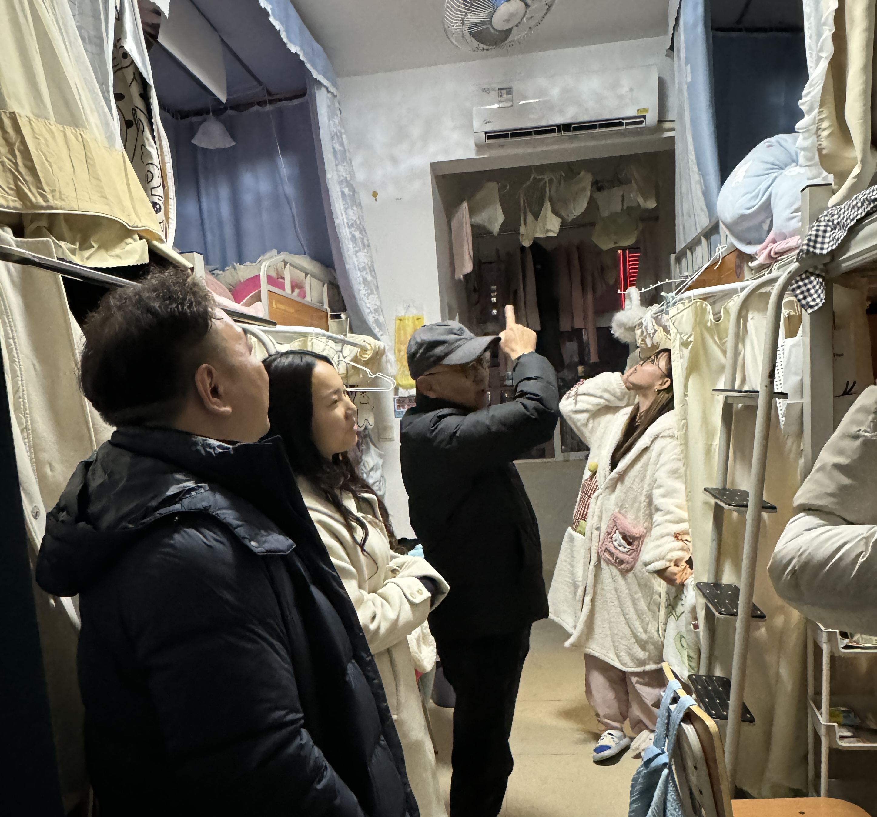 朱丹一行仔细查看了宿舍的消防设施、电器使用情况以及卫生状况,对可能存在的安全隐患进行了详细记录,现场提出了整改意见;同时各工作组详细了解了学生宿舍搬迁工作的进展,并听取学生意见反馈。