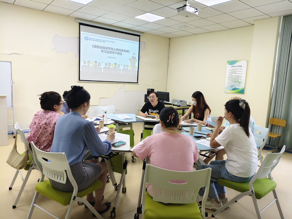 会上,心理健康教育与咨询中心通报了暑假社会实践调研工作情况,对新生易感群体筛查、世界精神卫生日宣传教育活动等工作进行了布置。大家还重点学习了《湖南省促进学生心理健康条例》,认为条例的出台既是对从业者规范,更是对心理健康事业的赋能,为我们开展工作指明了方向。