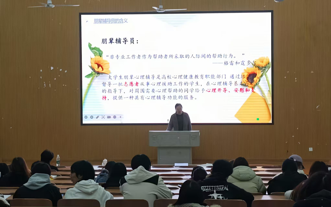 12月9日至10日,心理健康教育与咨询中心在教学楼D101教室顺利举办了2025级心理朋辈辅导员理论培训,旨在进一步夯实学校心理健康教育工作基础,提升2025级心理朋辈辅导员的专业素养与履职能力。