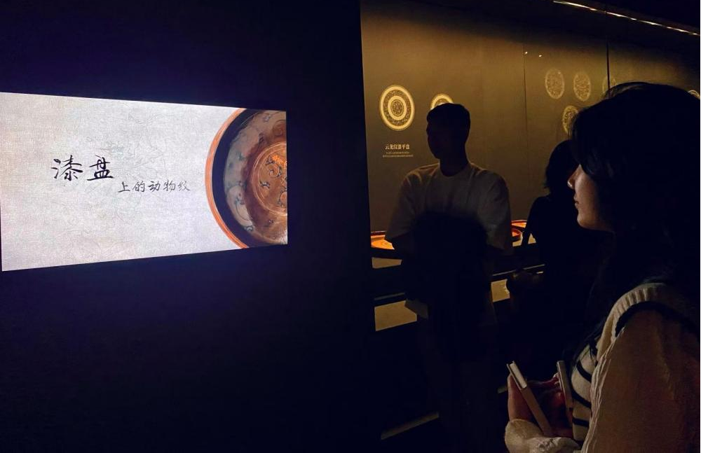留学生在博物馆内观看文物解说视频