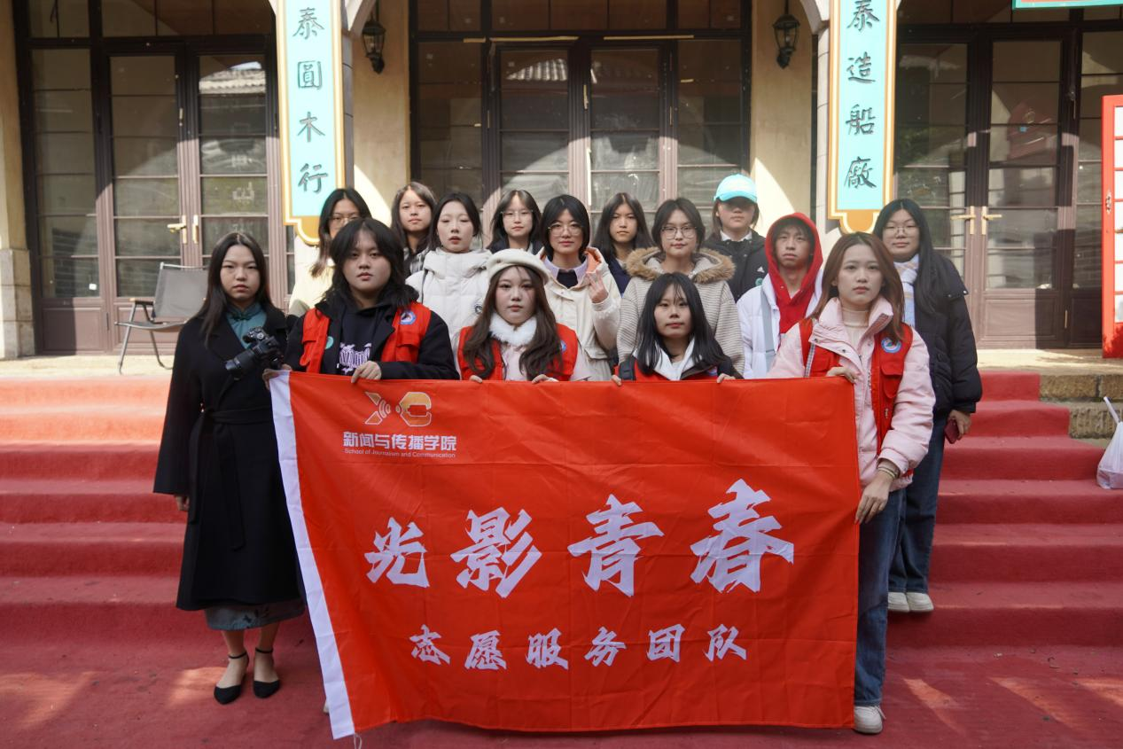 图一:“光影青春”志愿服务队在靖港古镇合影