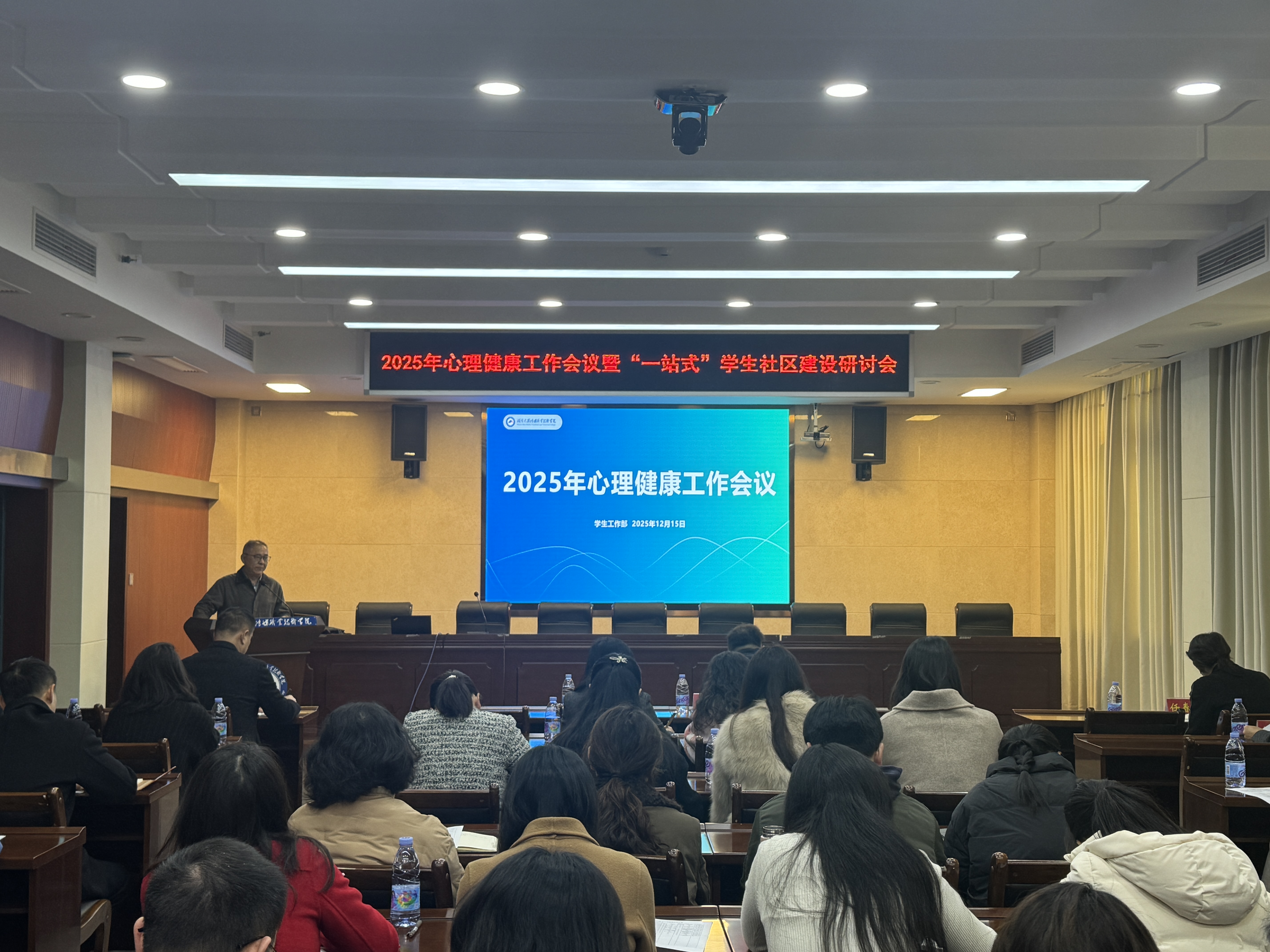 12月15日,学校召开2025年心理健康工作会议暨“一站式”学生社区建设研讨会。党委委员、副校长朱丹出席会议并讲话。各二级学院党总支书记、副书记、学工办负责人、团总支书记、辅导员及学生工作部全体人员参加会议。