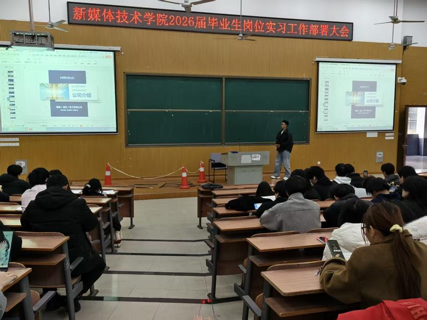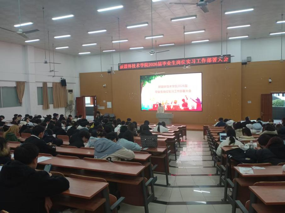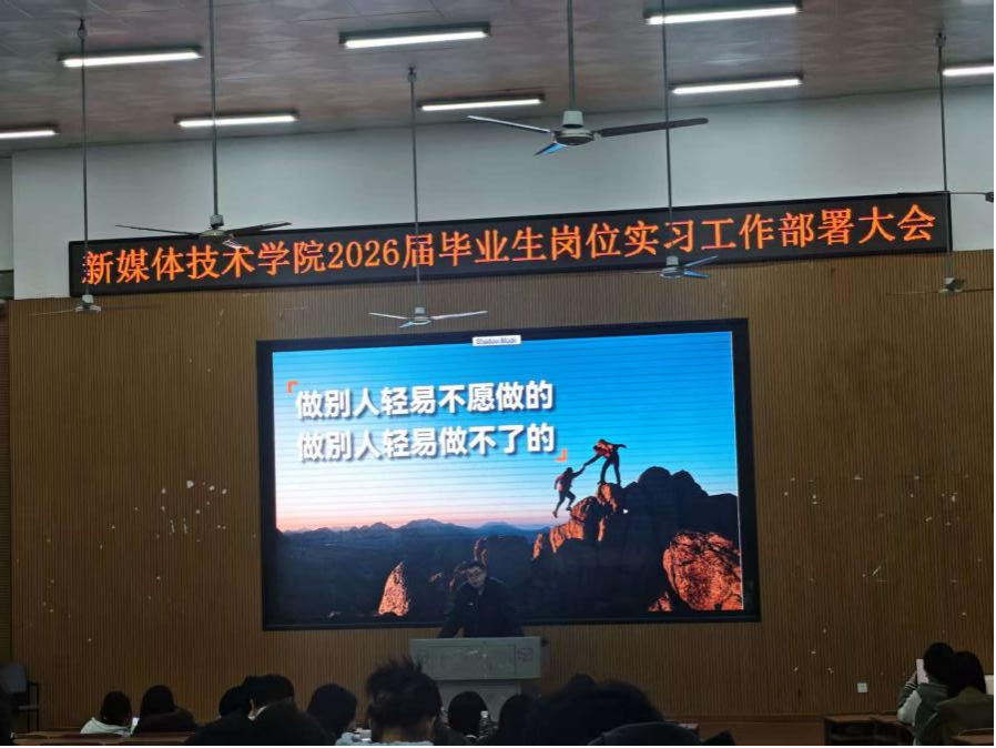 本次岗位实习部署大会的顺利召开,标志着新媒体技术学院2026届毕业生实习就业工作全面启动。会议既为2026届毕业生明确了实习方向、厘清了就业思路,也为学院持续整合资源、优化服务,为毕业生充分实习、顺利就业和成功深造奠定了坚实基础。