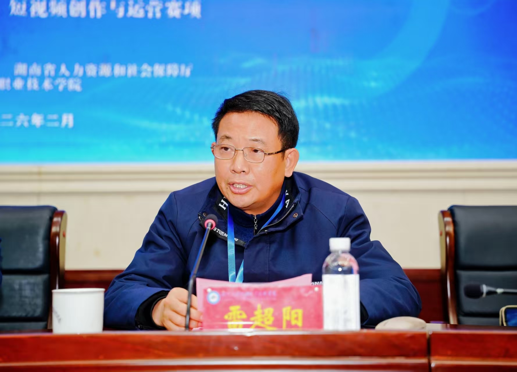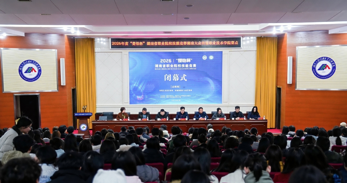 (教务处 王婵婷供稿)2月5日,2026年度“楚怡杯”湖南省职业院校技能竞赛湖南大众传媒职业技术学院赛点高职组环境艺术设计、短视频创作与运营2个赛项闭幕式在我校学术报告厅举行。赛点副主任、副校长申剑飞,赛点省派第一副主任雷超阳,省派纪律监督员于艺涛,省派赛项负责人史道敏、潘翠,环境艺术设计赛项裁判长黄茜,短视频创作与运营赛项裁判长赵忠鼎以及参加本次竞赛的兄弟院校领队、指导教师和选手代表参加了闭幕式。闭幕式由教务处处长余雅主持。