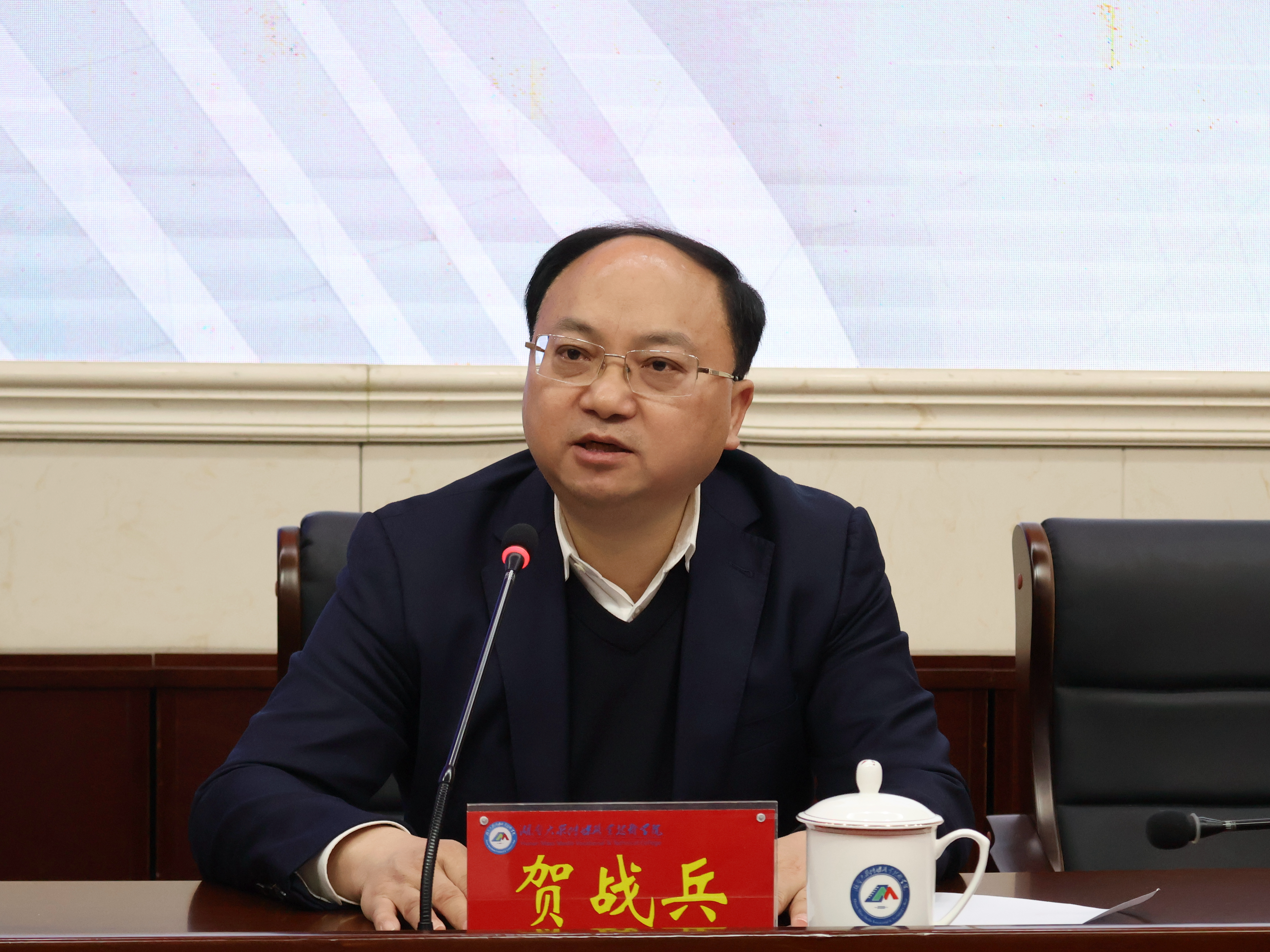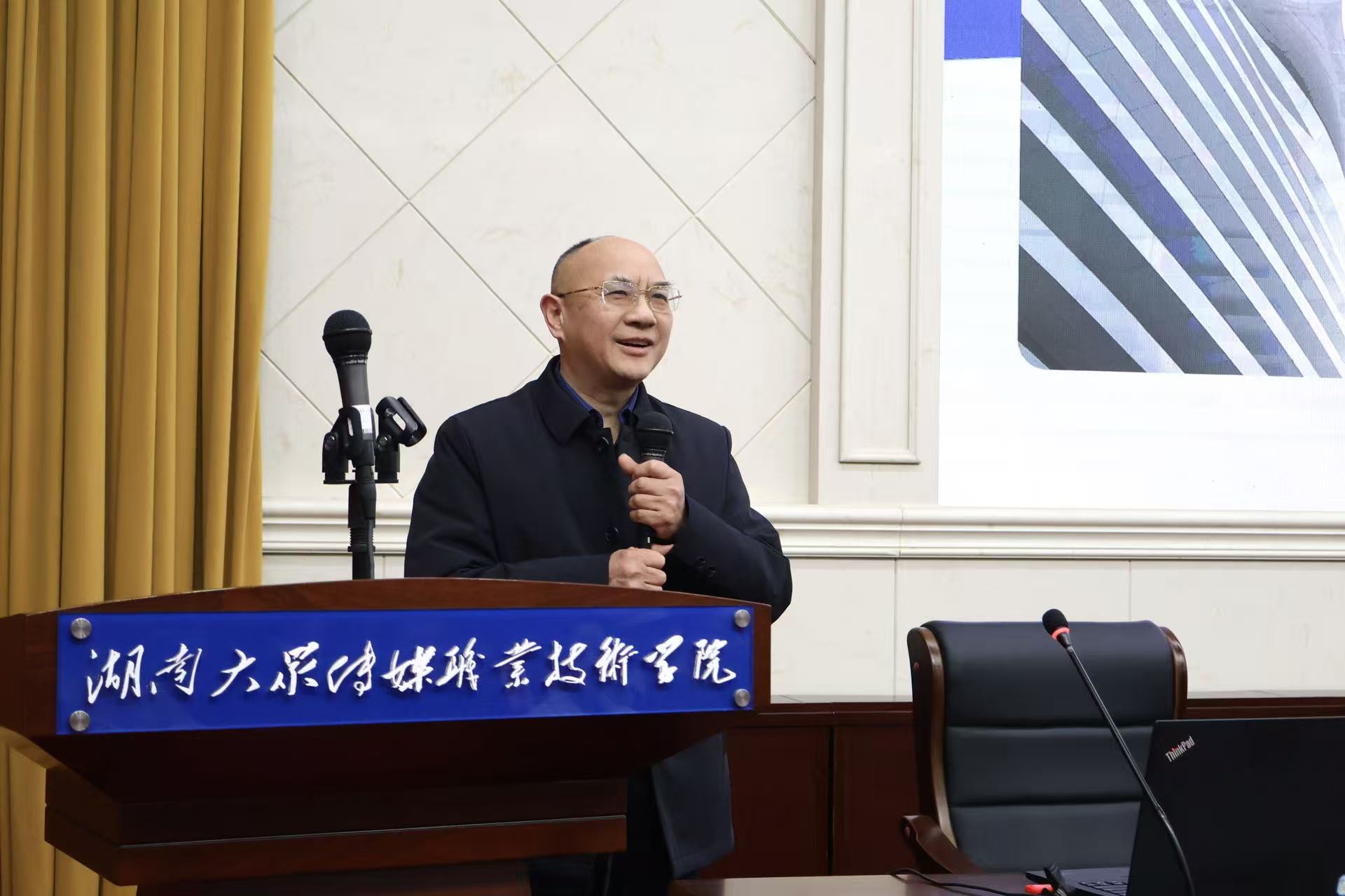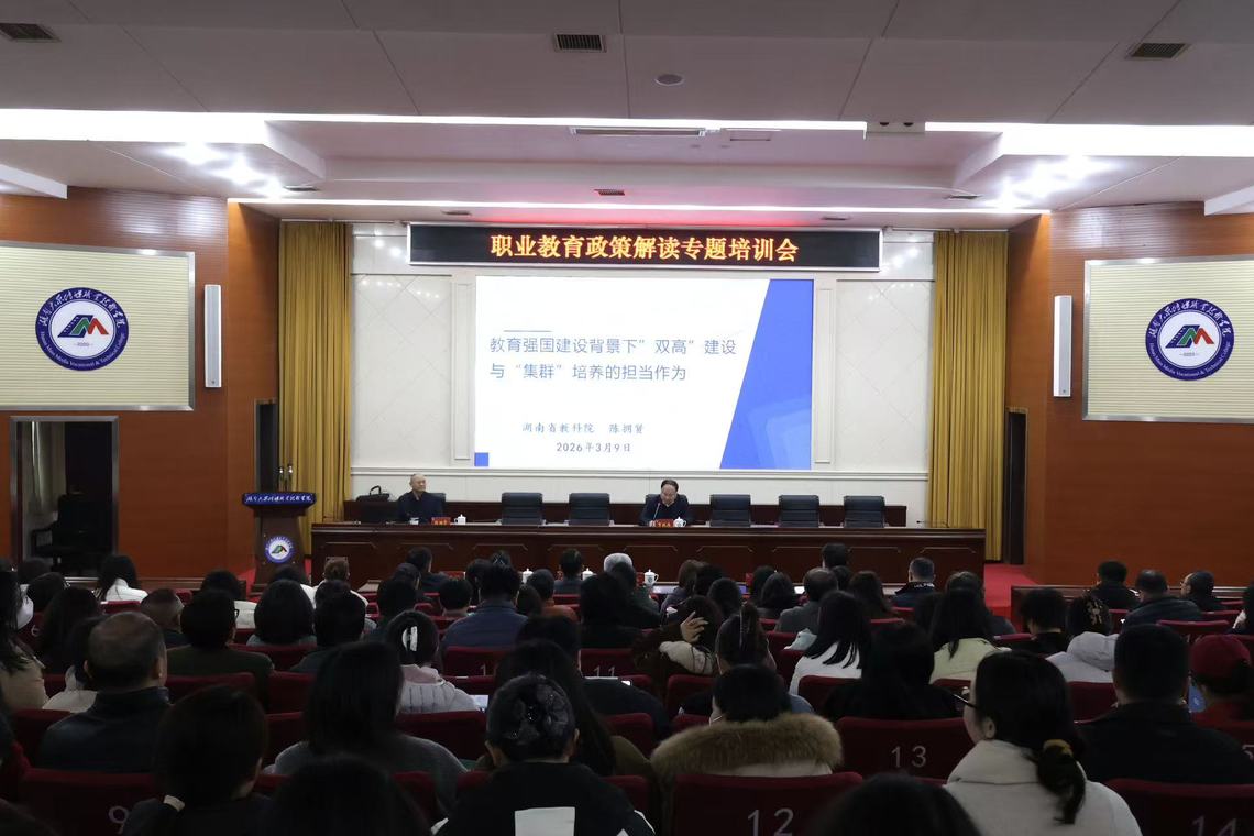 (教务处田贵铭 供稿)为深入推进国家“双高计划”建设,紧密围绕“文化+科技”融合发展趋势,3月9日,我校特邀湖南省教育科学研究院党委副书记、纪委书记陈拥贤同志来校,作《高技能人才集群培养计划》专题讲座,为学校新学期工作与“双高”建设把舵定向、精准赋能。全体校领导、中层及副科级干部、具有正高职称或博士学位的教职工、教研室主任、专业带头人、数字媒体艺术设计专业群全体教师参会。讲座由党委书记贺战兵主持。