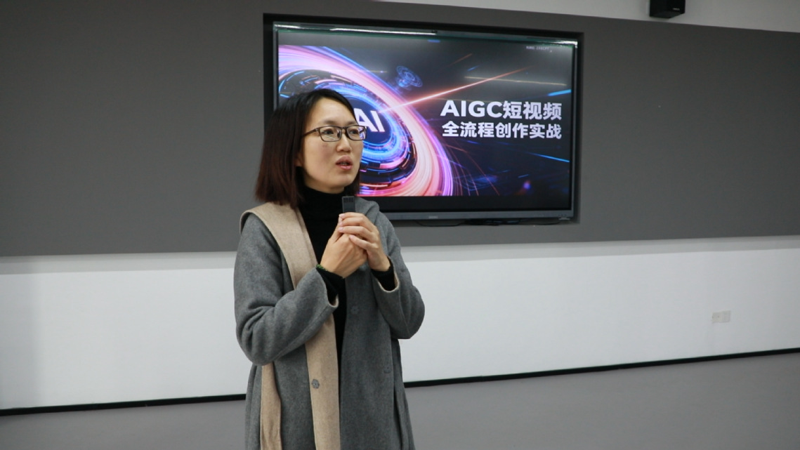 课程教学在学院综合实训楼5G+XR实训室开展,课程体系对标行业前沿、突出实战应用,构建了校企协同、骨干引领的教学团队。学院校企合作企业中广天择传媒技术总监、现代学徒制班企业导师谭芝,深度拆解AIGC短视频创作逻辑与AI MV视觉设计技巧;学院院长李辉熠聚焦AI视频剪辑与智能合成核心技术,精准传授行业应用要点;数字媒体技术专业教研室主任张敬、虚拟现实技术应用专业教研室主任周艳梅,分别围绕实景拍摄、数字人开发、AIGC工具实操等关键模块开展精细化教学。课程层层递进、理实结合,全面提升研修班学员的数字媒体创作实战能力。