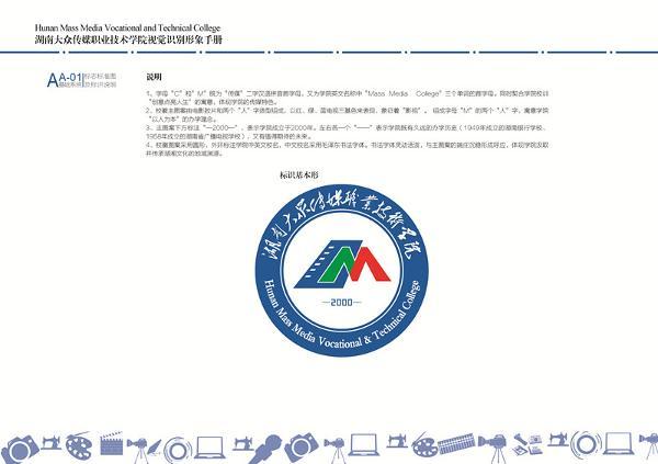 3、主图案下方标注“—2000—”,表示学院成立于2000年。左右各一个“——”表示学院既有久远的办学历史(1949年成立的湖南银行学校、1958年成立的湖南省广播电视学校),又有值得期待的未来。